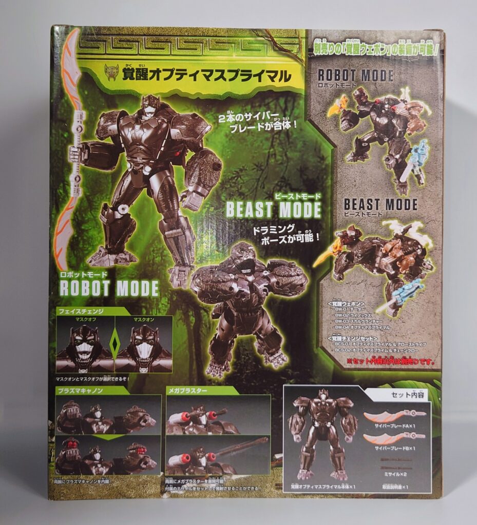 今回ご紹介するのは、映画『トランスフォーマー/ビースト覚醒』ラインナップの中でもコマンダークラス相当のサイズを誇る覚醒オプティマスプライマルです。箱を開けた瞬間に飛び込んでくるのはデラックスクラスやボイジャークラスを圧倒するまさに『プライマル(原始的)』な存在感。最新の可動ギミックとどこか懐かしい『ガシガシ遊べる玩具感』が見事に融合したこの大型アイテムは可動やフォルムよりも遊びやすさに重きを置いたアイテムで現在でも4K付近で購入可能とお手軽さも見逃せませんね