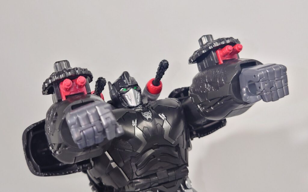 腕の内側にあるスイッチを押し出すとプラズマキャノンが展開。ビーストコンボイMP版に近いギミック