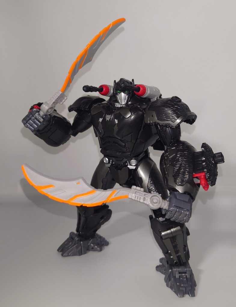 サイズアップしましたがデラックスクラスより工程は簡略化されている気がします。脚部もクリック関節があり同じフラグシップアイテムのブレイブコマンダーオプティマスよりも安定感がありますが首周りなどの可動では劣る印象。しかし、あっちは肩の構造に欠陥がありましてねぇ…