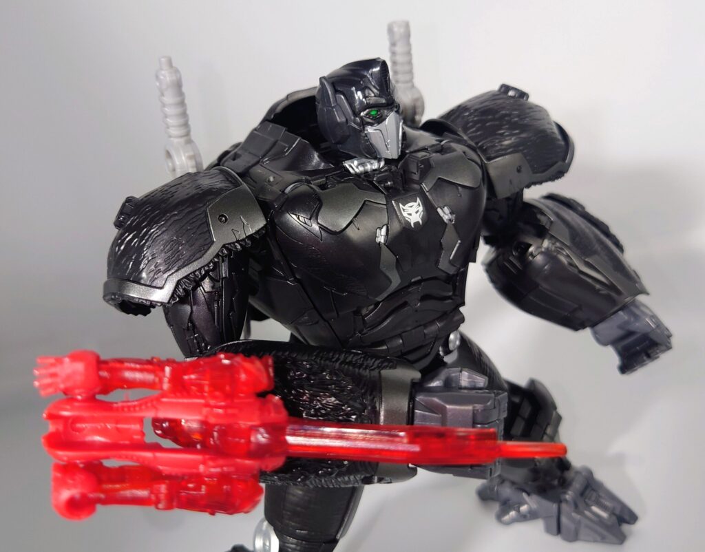 この懐かしいフォルムはビーストウォーズ期の当時品ビーストコンボイを思わせるサイズで実際に近い大きさです