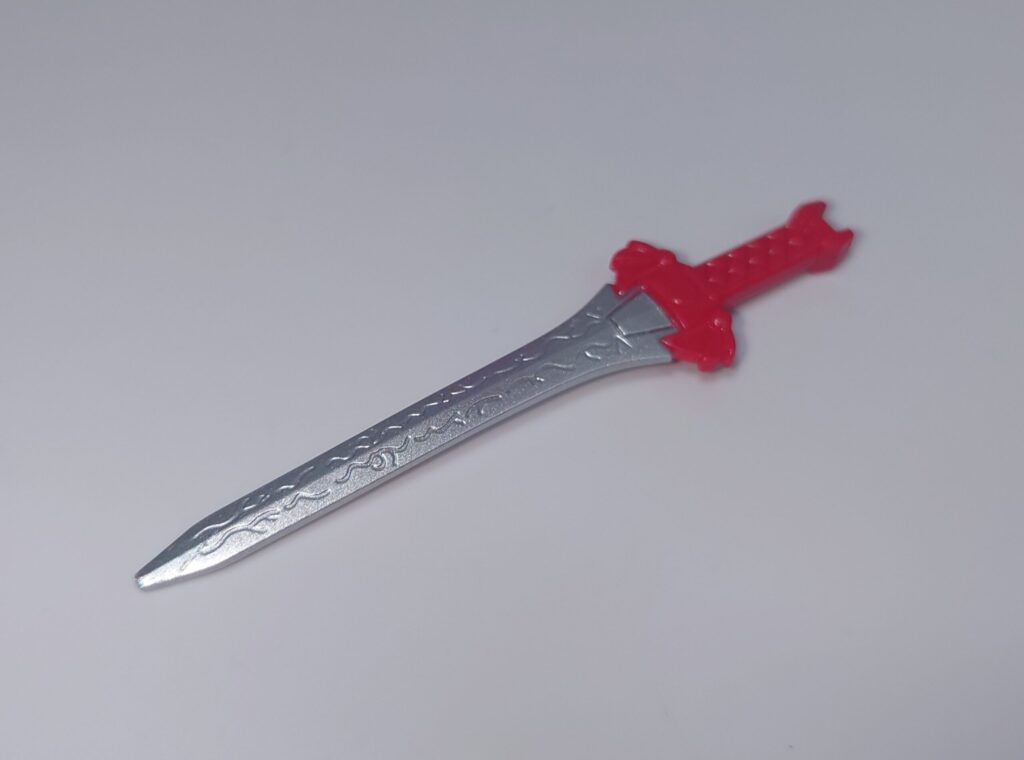 武器の竜撃剣が付属。軟質製でやや小さいものの造形や刃に刻まれた文様が再現されています。シレッと超全集に戦車を真っ二つにできる的な記載がありましたが、複合装甲を持つ戦車を破壊するのは仮面ライダークウガのアルティメットフォームのキック力(100t)でも難しいらしいです
