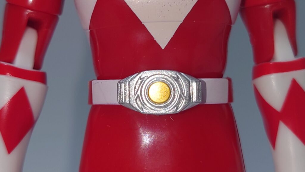 海の向こうでは元祖レッドレンジャー。後の恐竜系戦隊に継承されるひし形の模様もプリントで再現