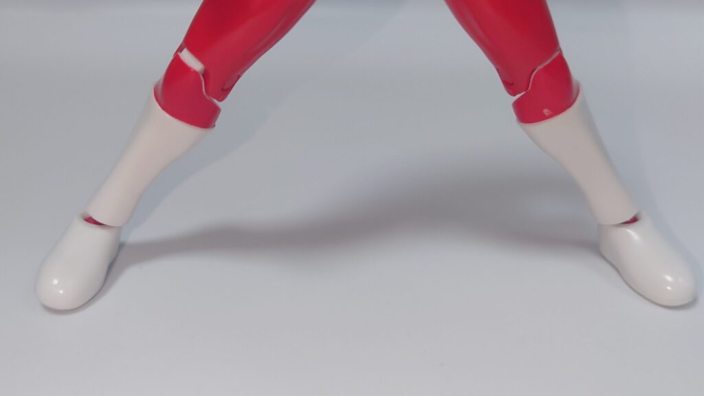 脚部は股関節基部に可動軸が存在しかなり深い角度で開脚が可能ですが足首のボールジョイントに切り欠きなどがないので接地性に難アリ