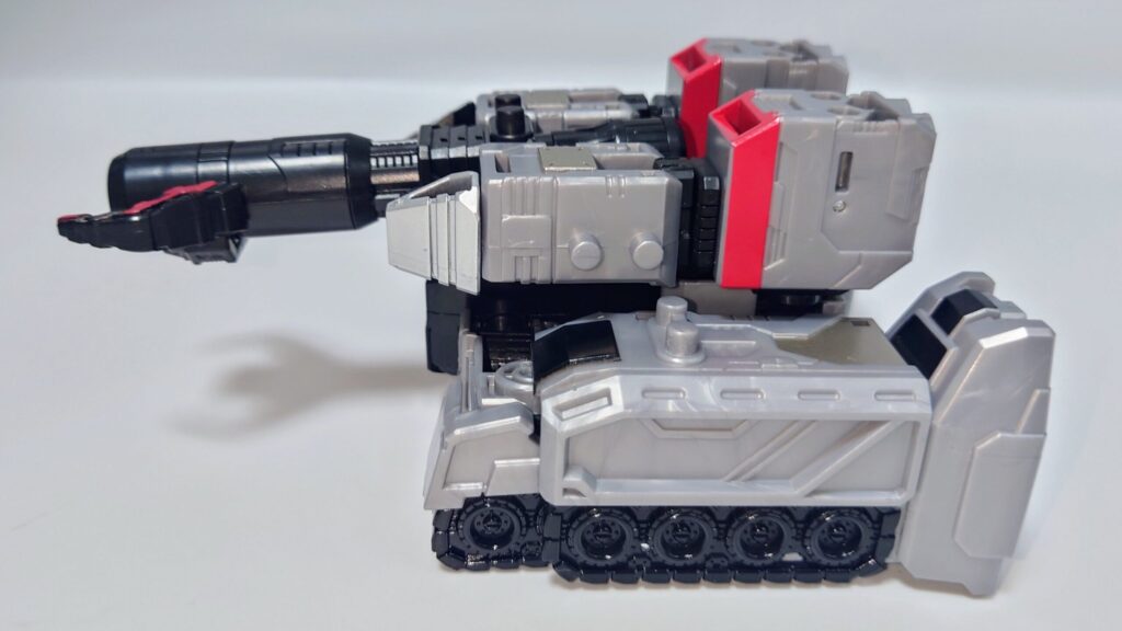 G1メガトロンをかなり意識したスタイリング。合体ギミックの為か全体的にガッチリした印象に仕上がっています