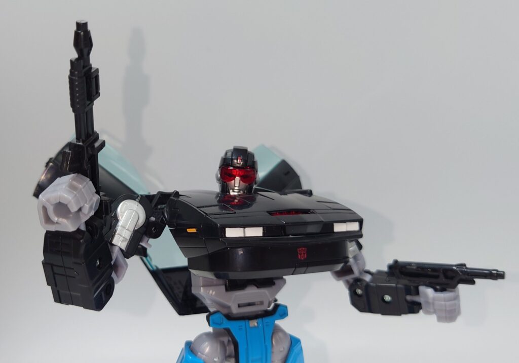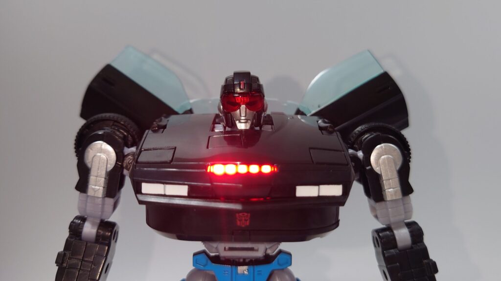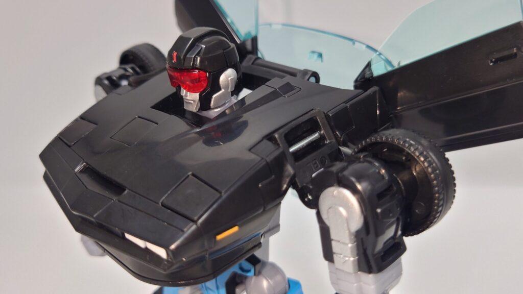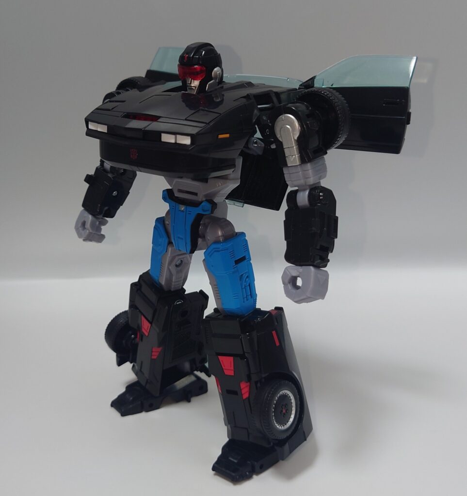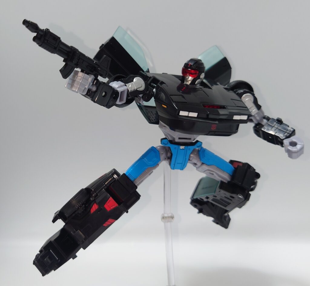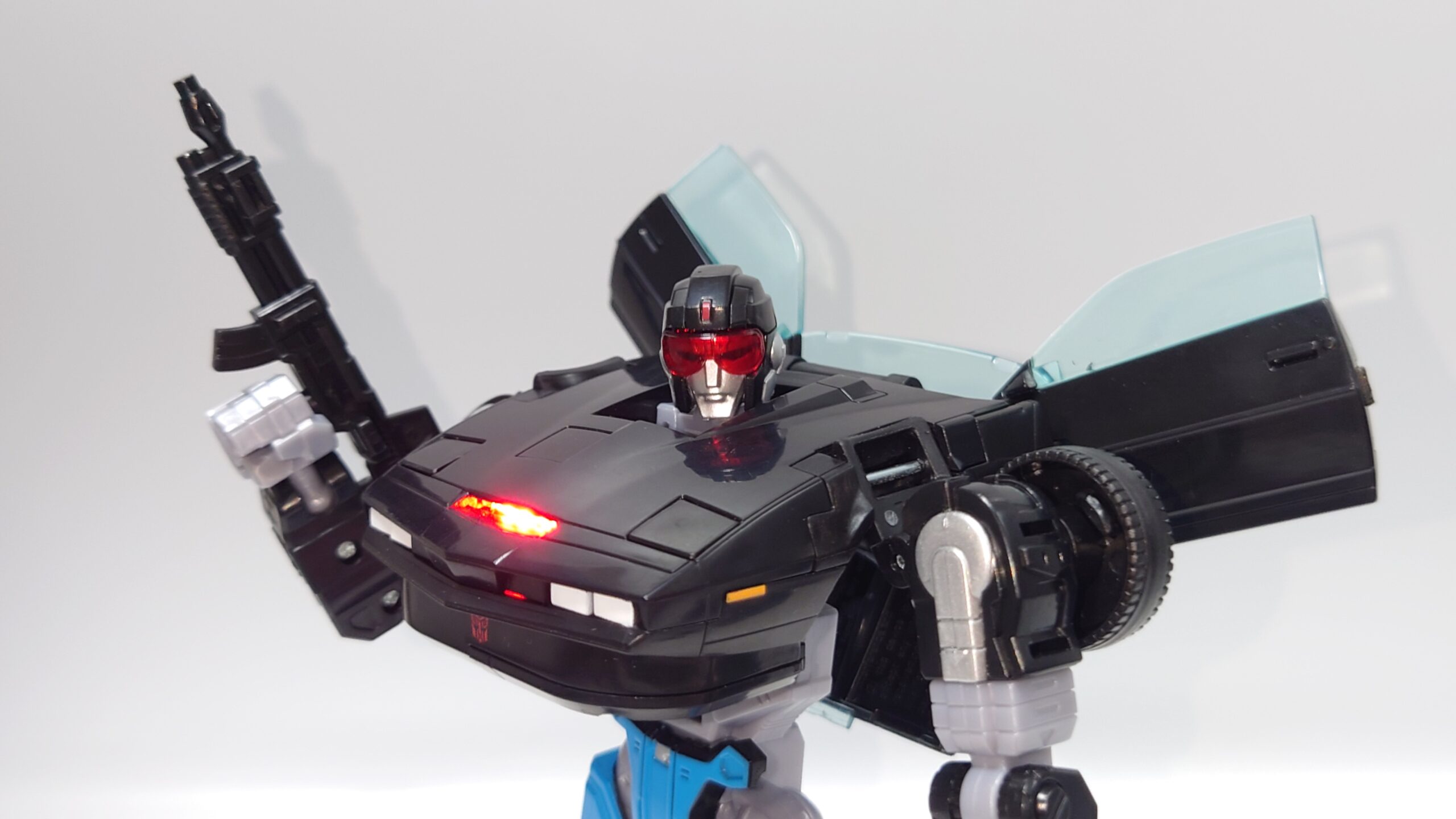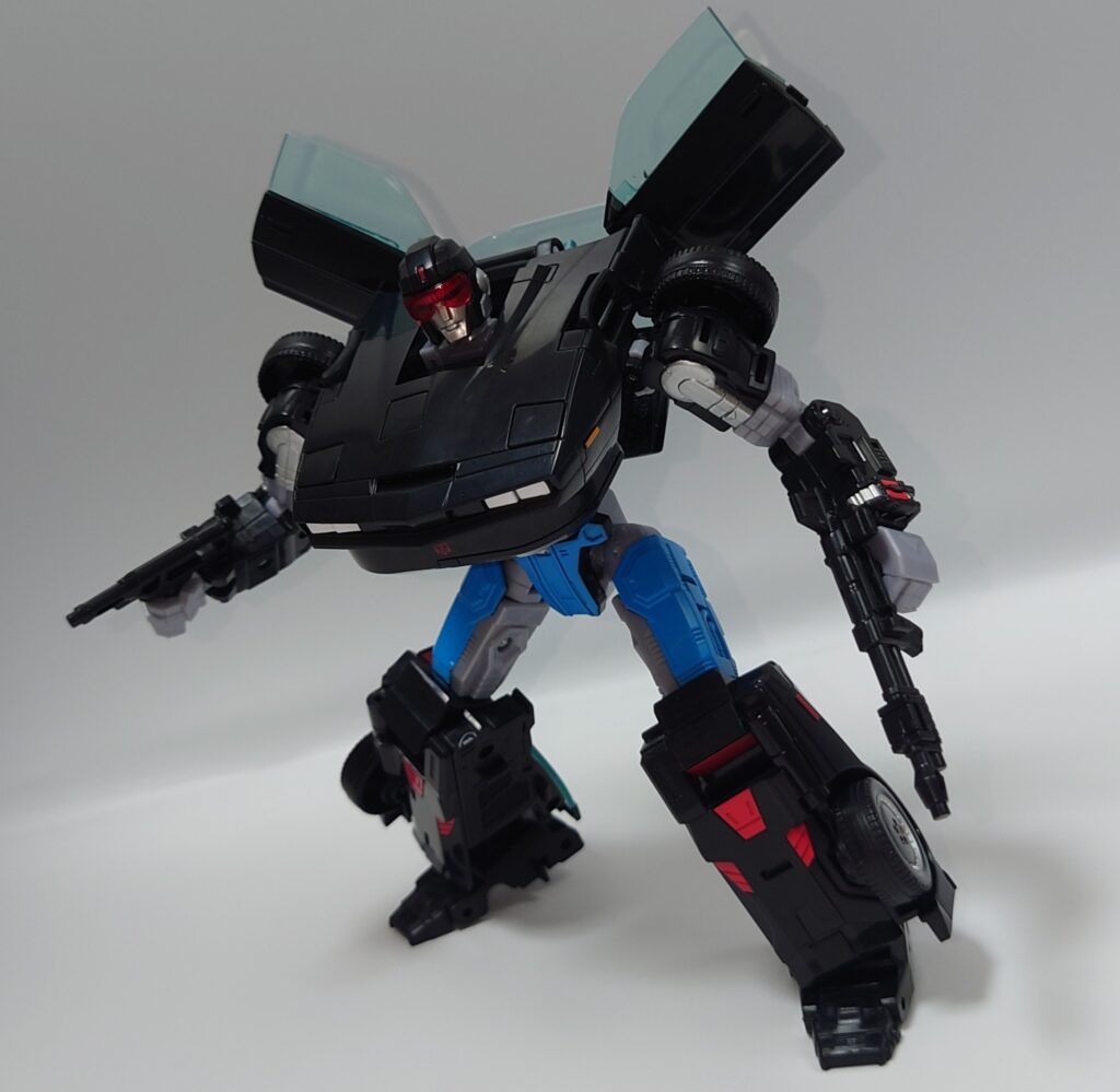 ナイトライダー(1982)に登場するナイト2000をモチーフにしたビークルモード。ベース車はポンティアック・ファイヤーバードらしいですが当映像作品を見たことがないので詳しく語れず…