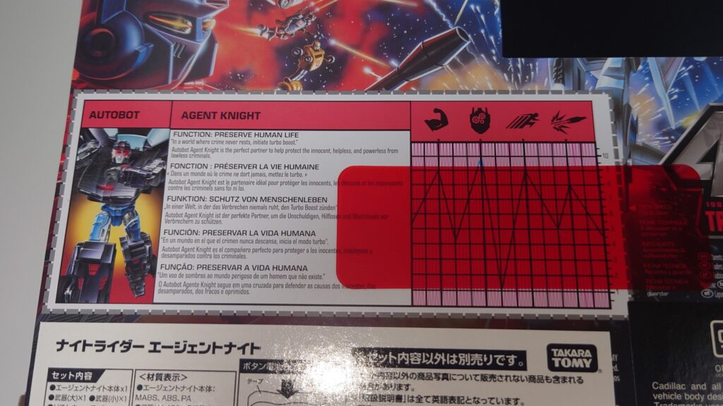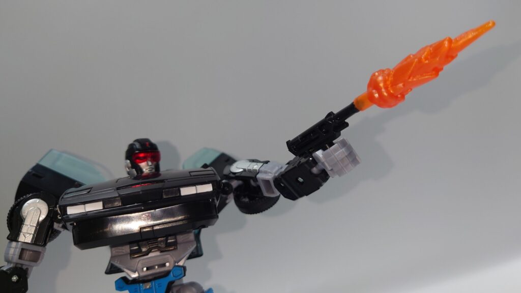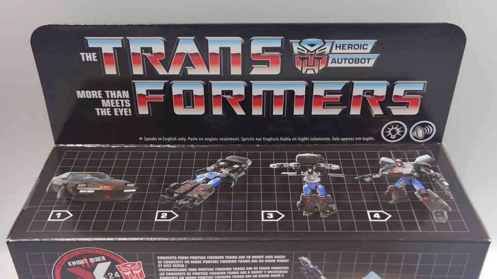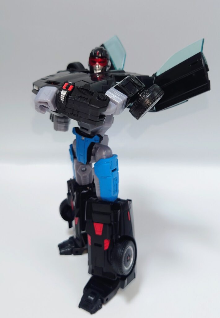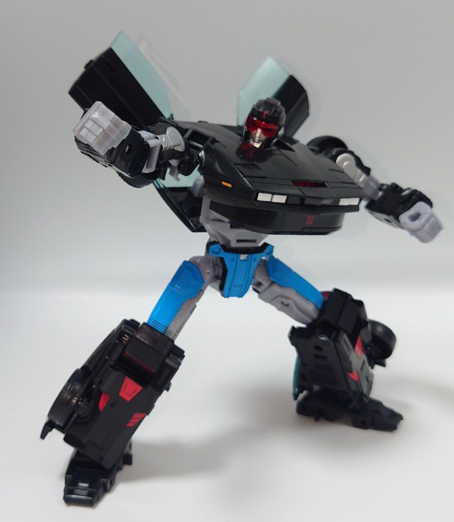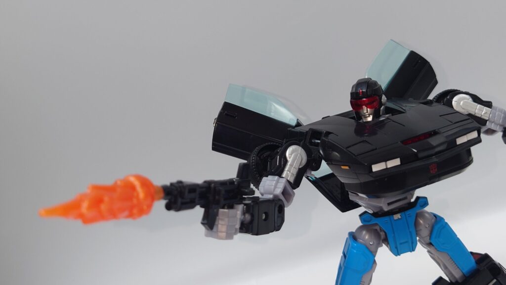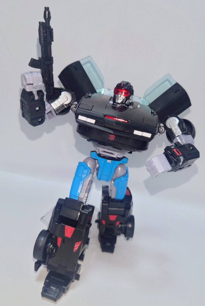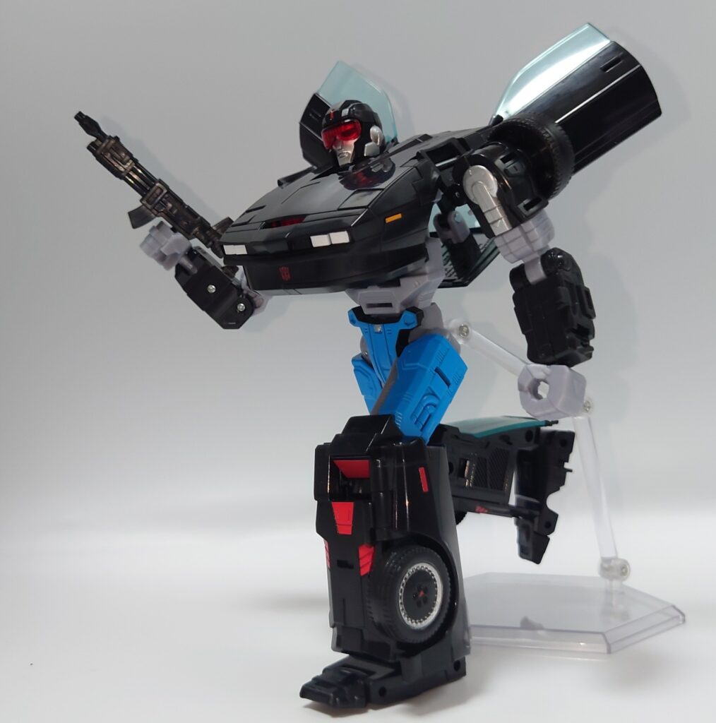 ナイトライダー(1982)に登場するナイト2000をモチーフにしたビークルモード。ベース車はポンティアック・ファイヤーバードらしいですが当映像作品を見たことがないので詳しく語れず…