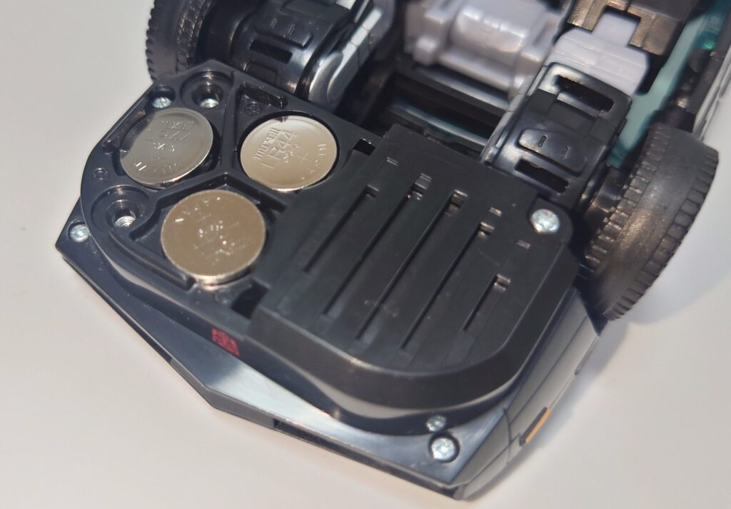 本トイにはライト&サウンドギミックが内蔵されており、ボタン電池3個を用意する必要があります
