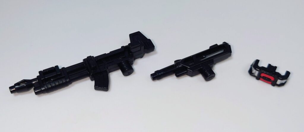 銃が2つ付属。右側の通信機は『コムリンク』という名前で主人公がナイトライダーと会話する際に使用されていた装備らしいです