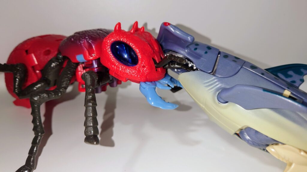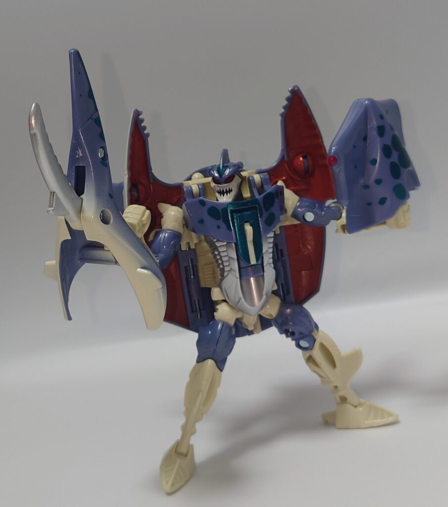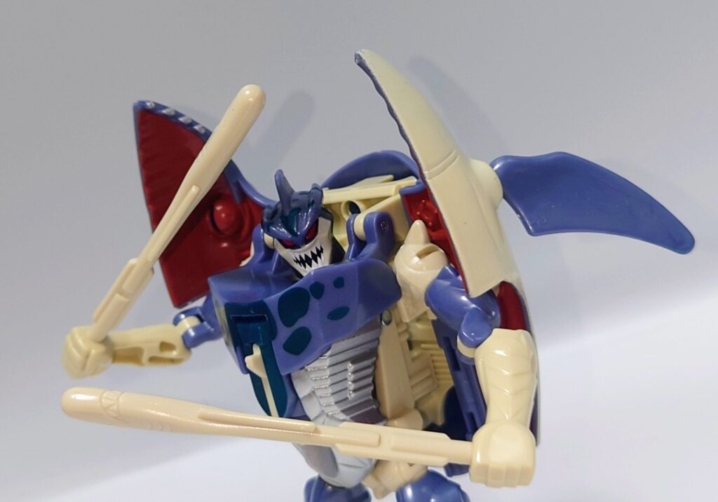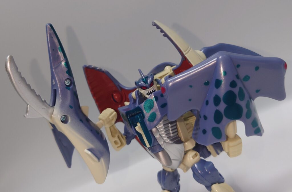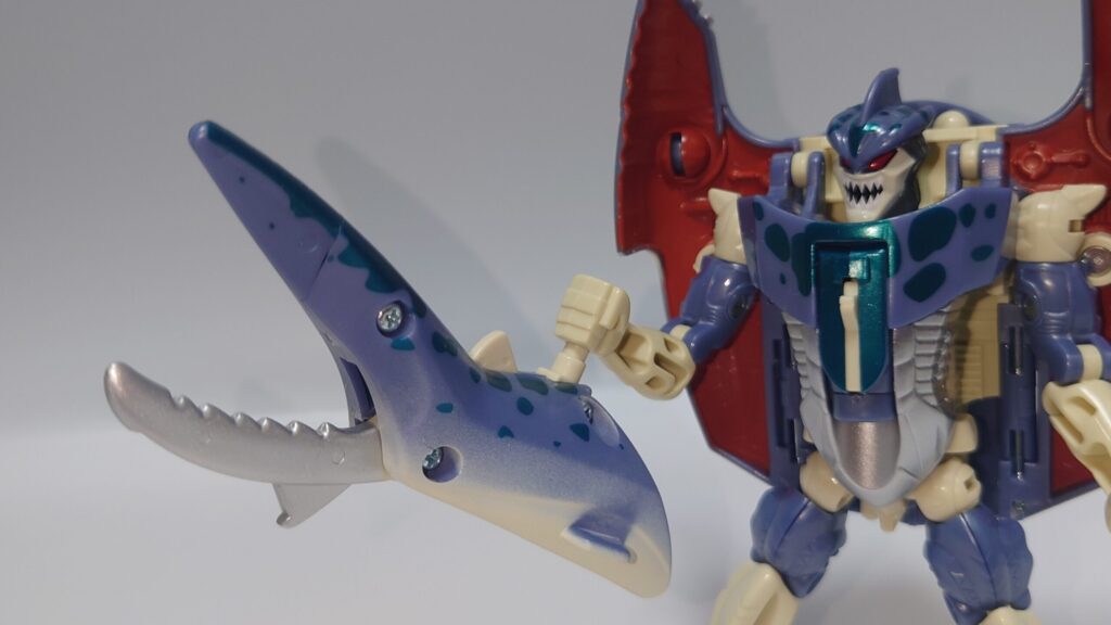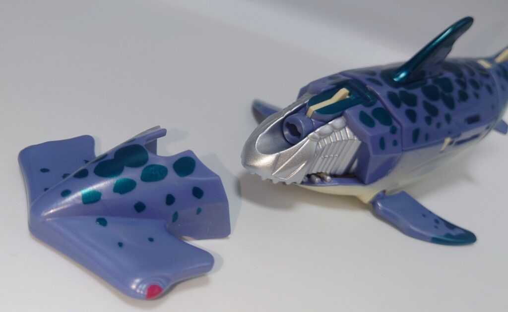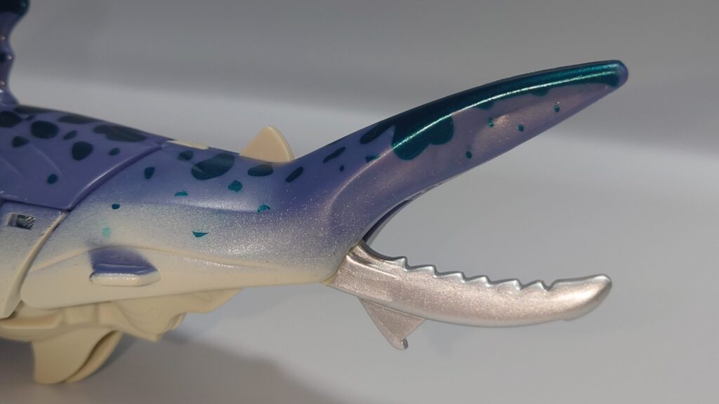 シュモクザメの頭部は外さなくてもロボモードになりますが前垂れが大きくなってしまいカッコ悪いかも…