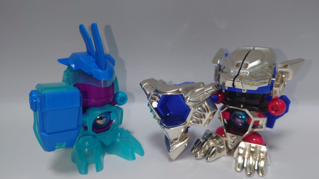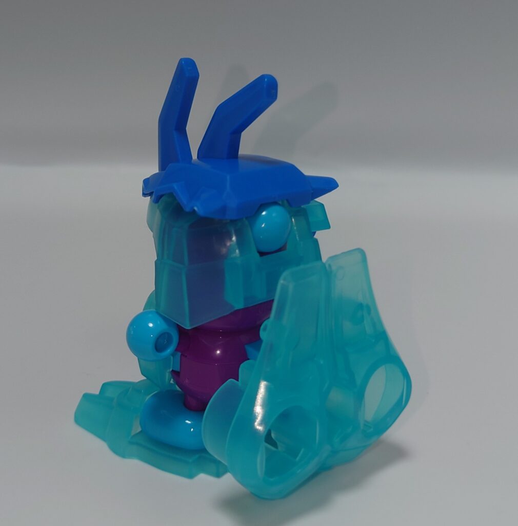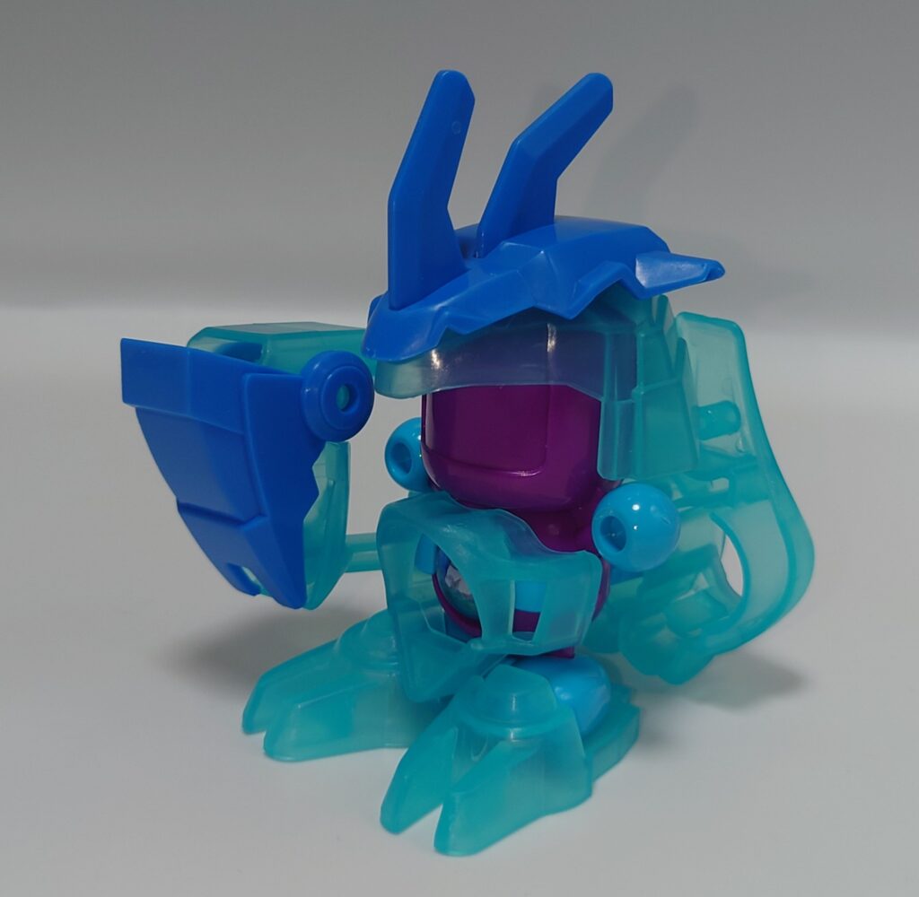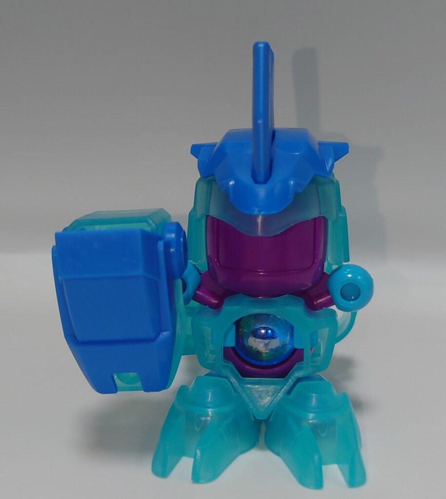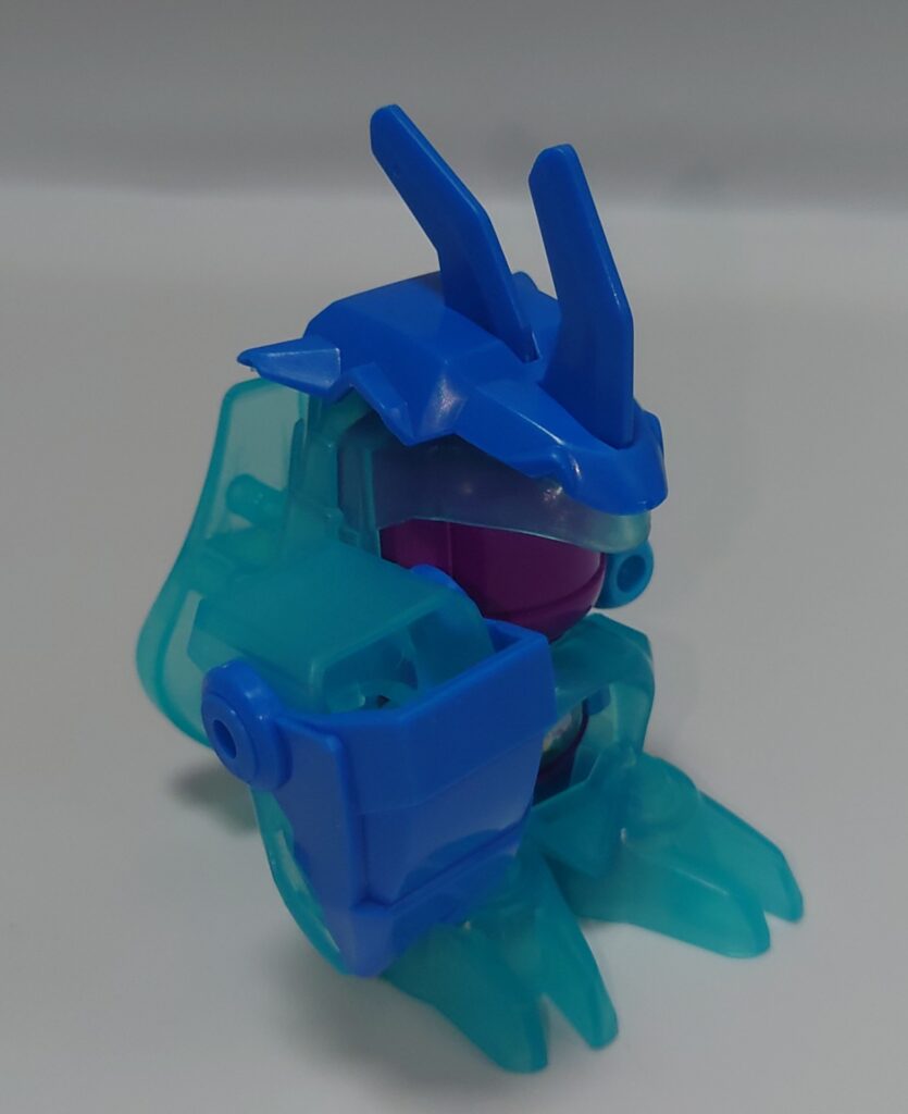 透明な水色の鎧を纏ったリノボンバーメイル。デザインこそ異なりますがパーツ構成はシャークボンバーメイルと同様。ビー玉も発射可能です