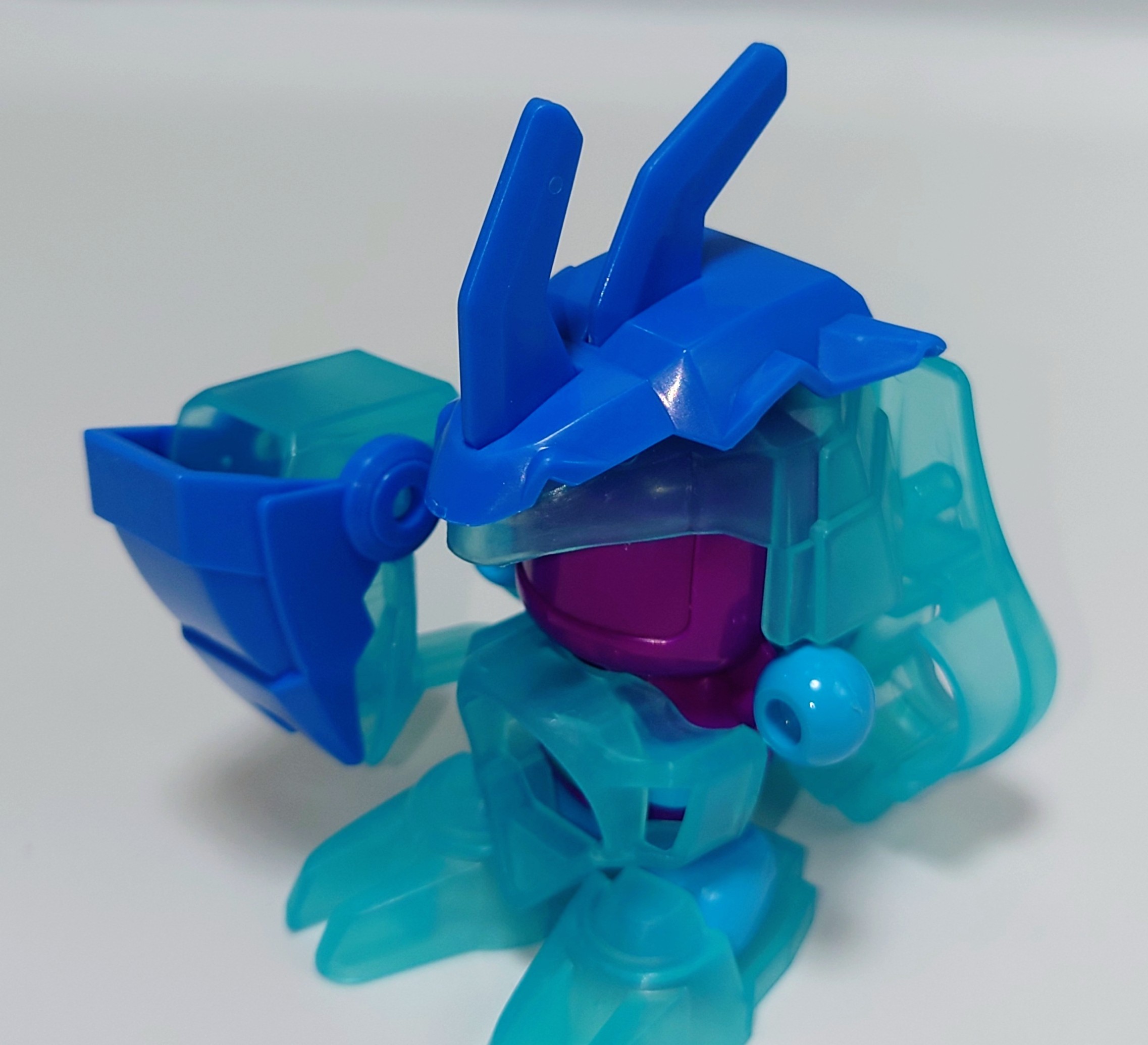 透明な水色の鎧を纏ったリノボンバーメイル。デザインこそ異なりますがパーツ構成はシャークボンバーメイルと同様。ビー玉も発射可能です