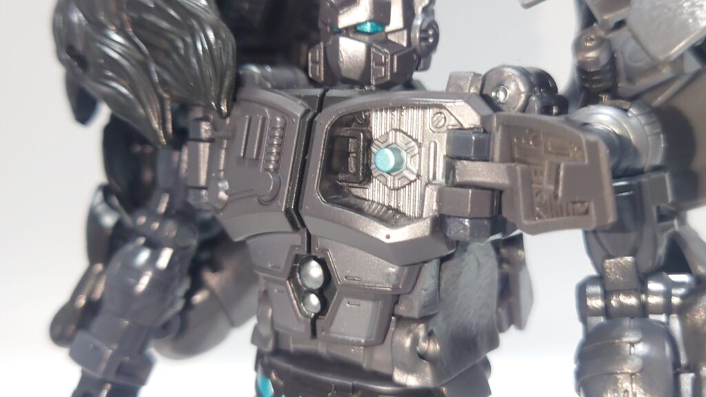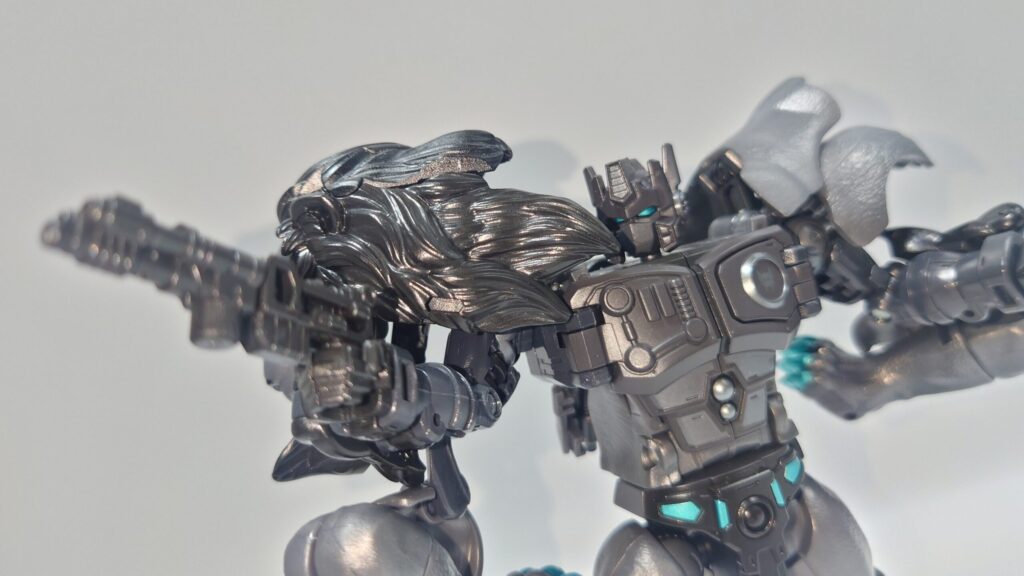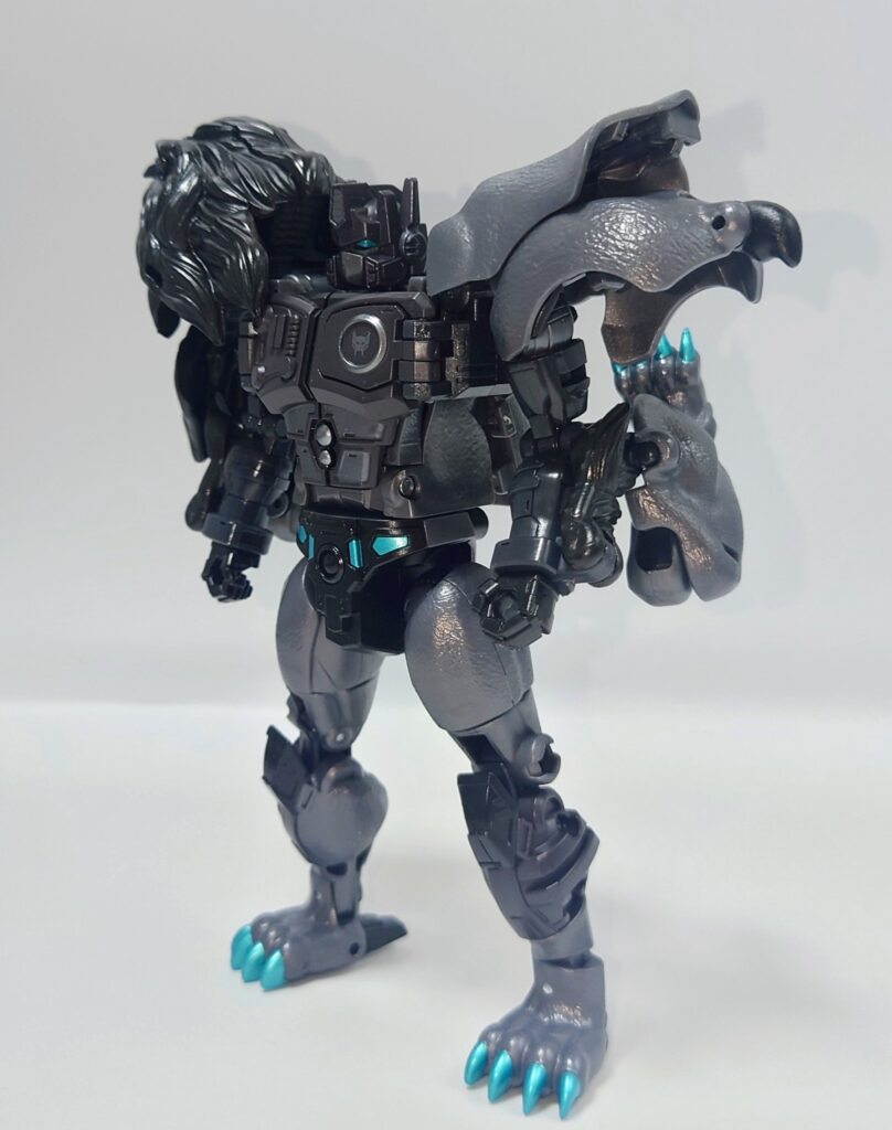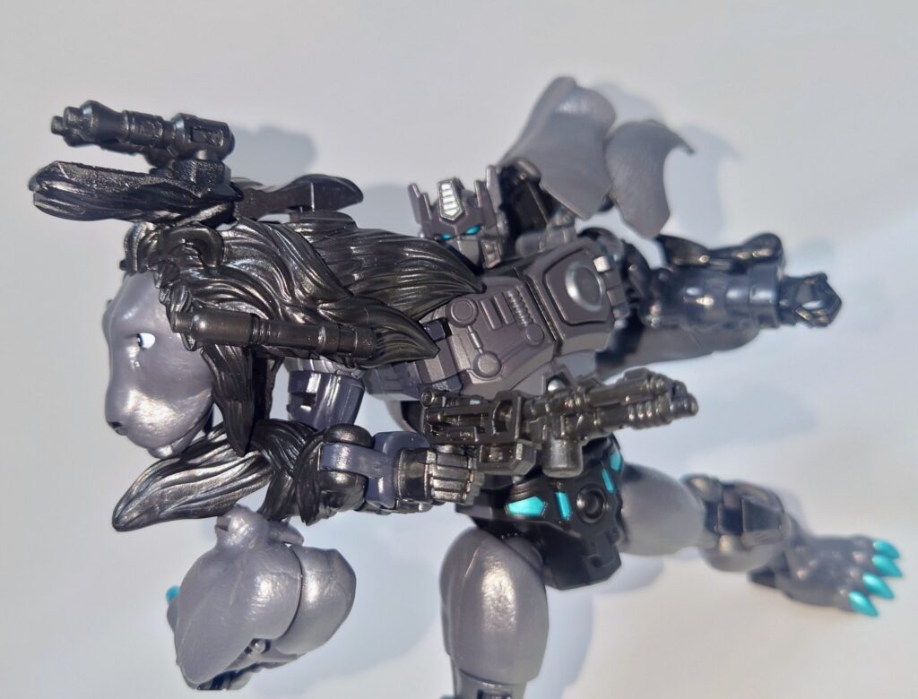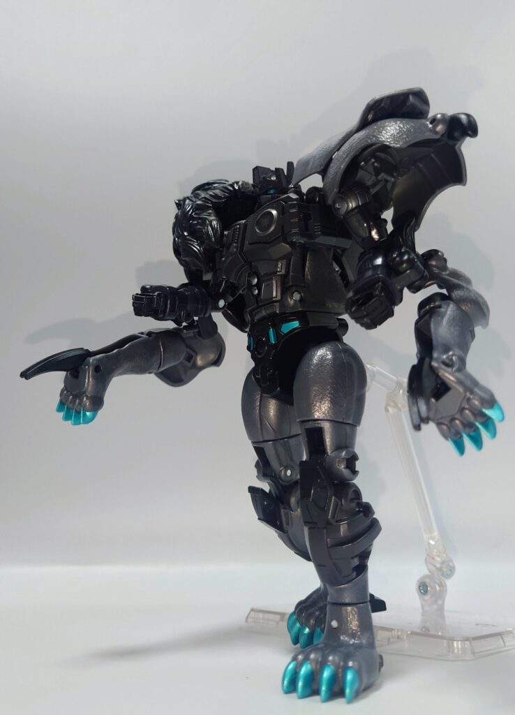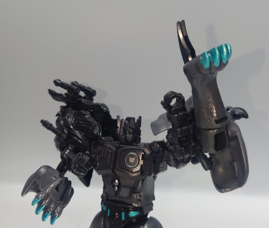 漆黒のダークカラーに染まったビーストモード。爪にはネメシスプライム系統によく採用される若竹色のメタリックカラーに染められています