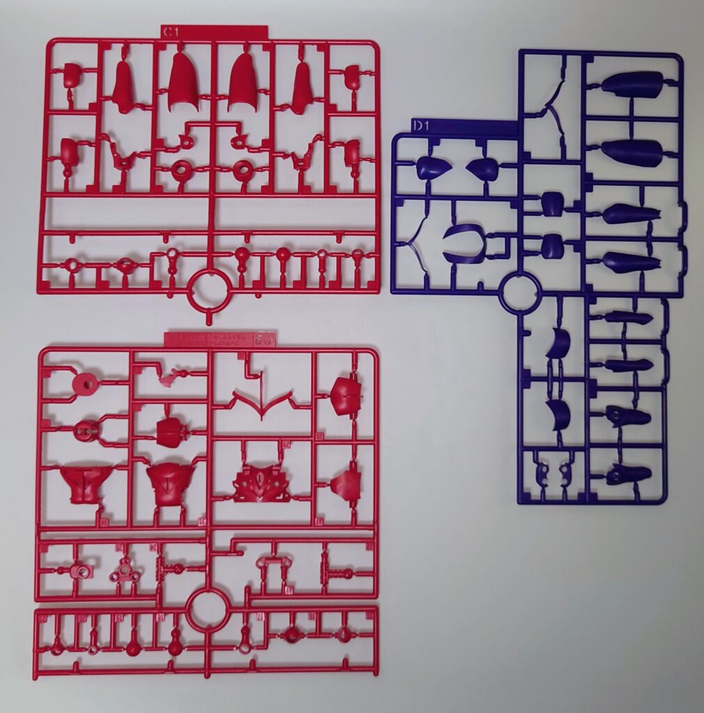 胸部プロテクターのゴールドもパーツ分け。しかし、クリアランスややタイトなのでゲート処理をちゃんと行わないとハマりません