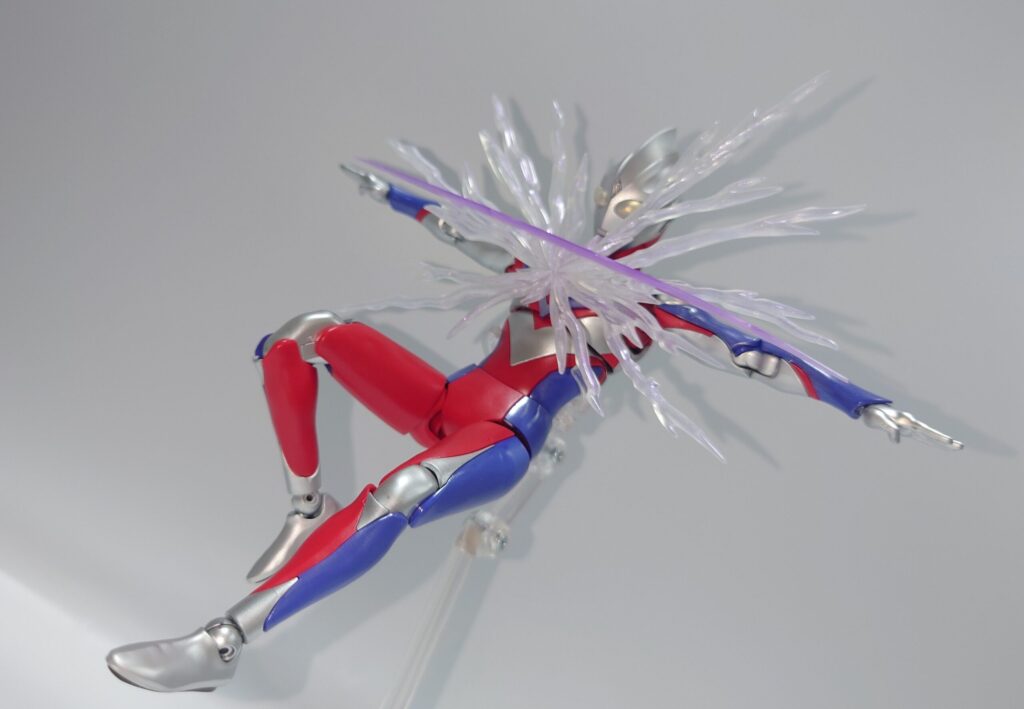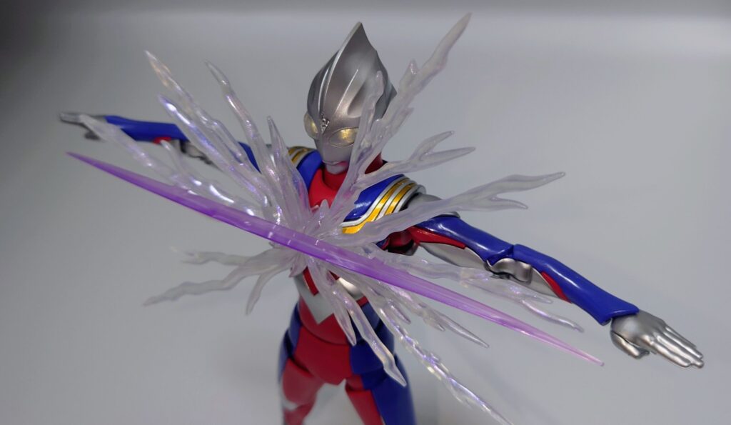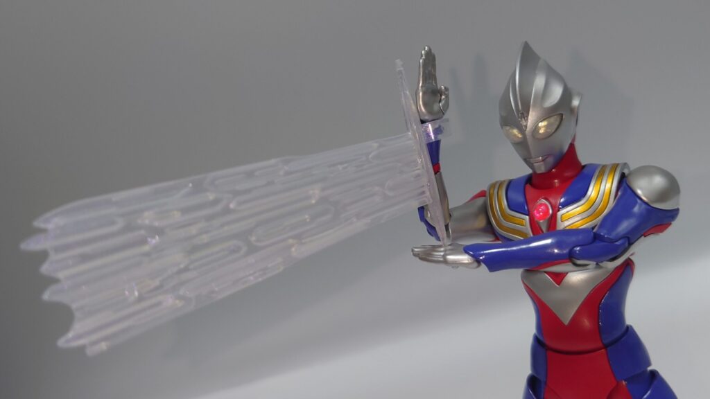 ゼペリオン光線のエフェクトパーツも再現。ティガの立体物の中で現時点では最後発のため再現度も抜群