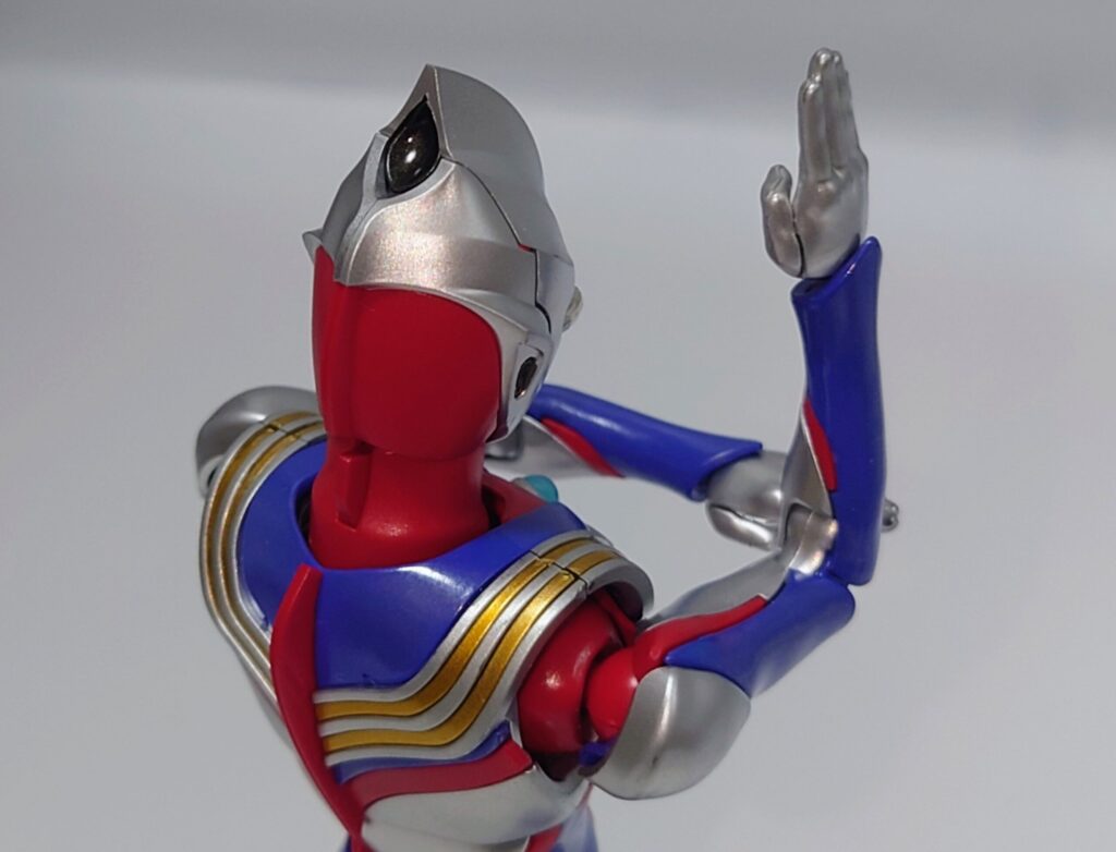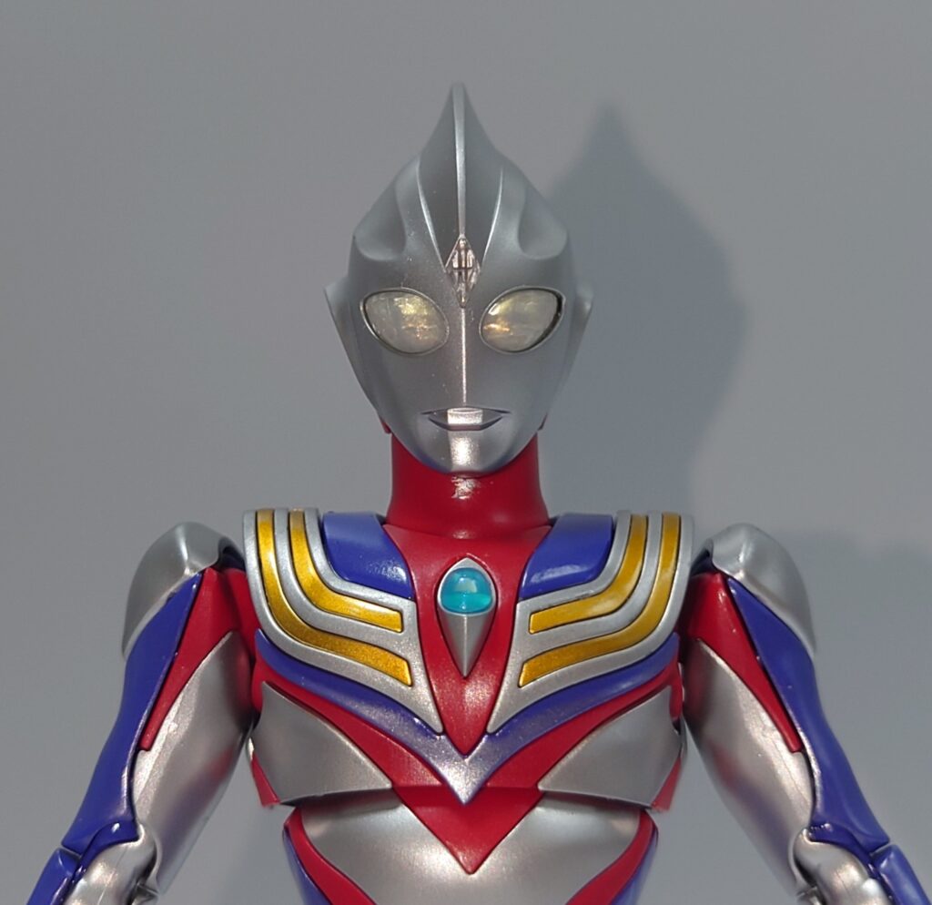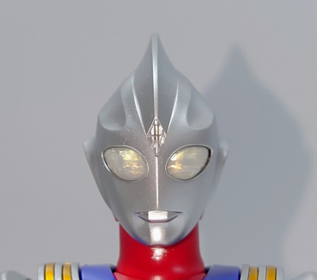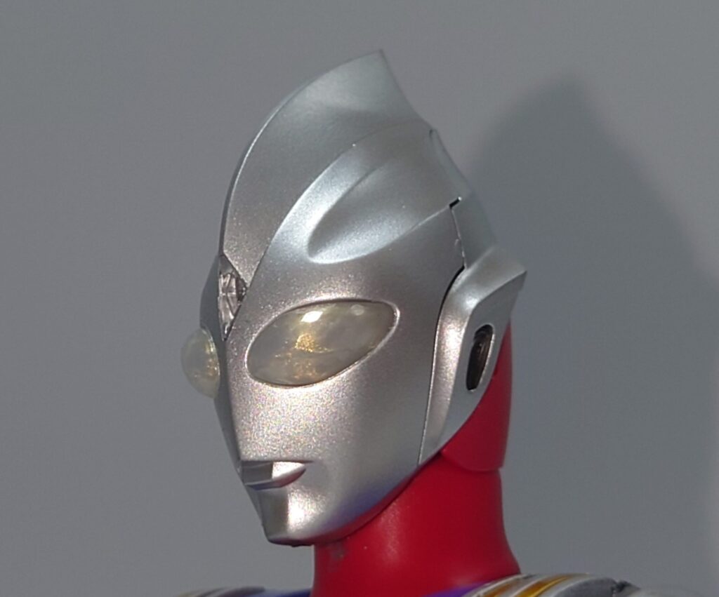 こうしてみるとティガはやや女性的な造型をしている頭部ということがわかります。初代ウルトラマンのマスクを削ってアレンジする方向性は見事な発想