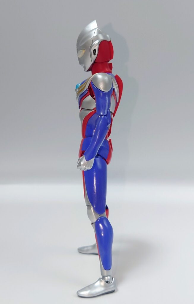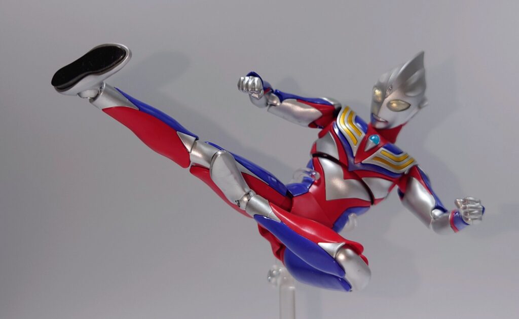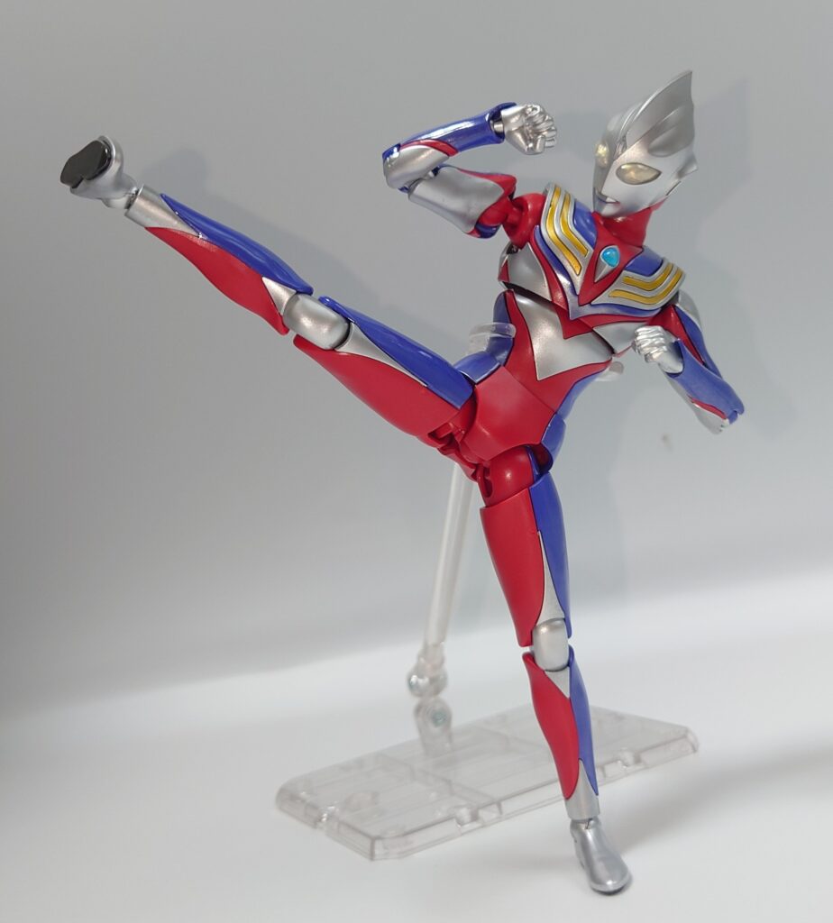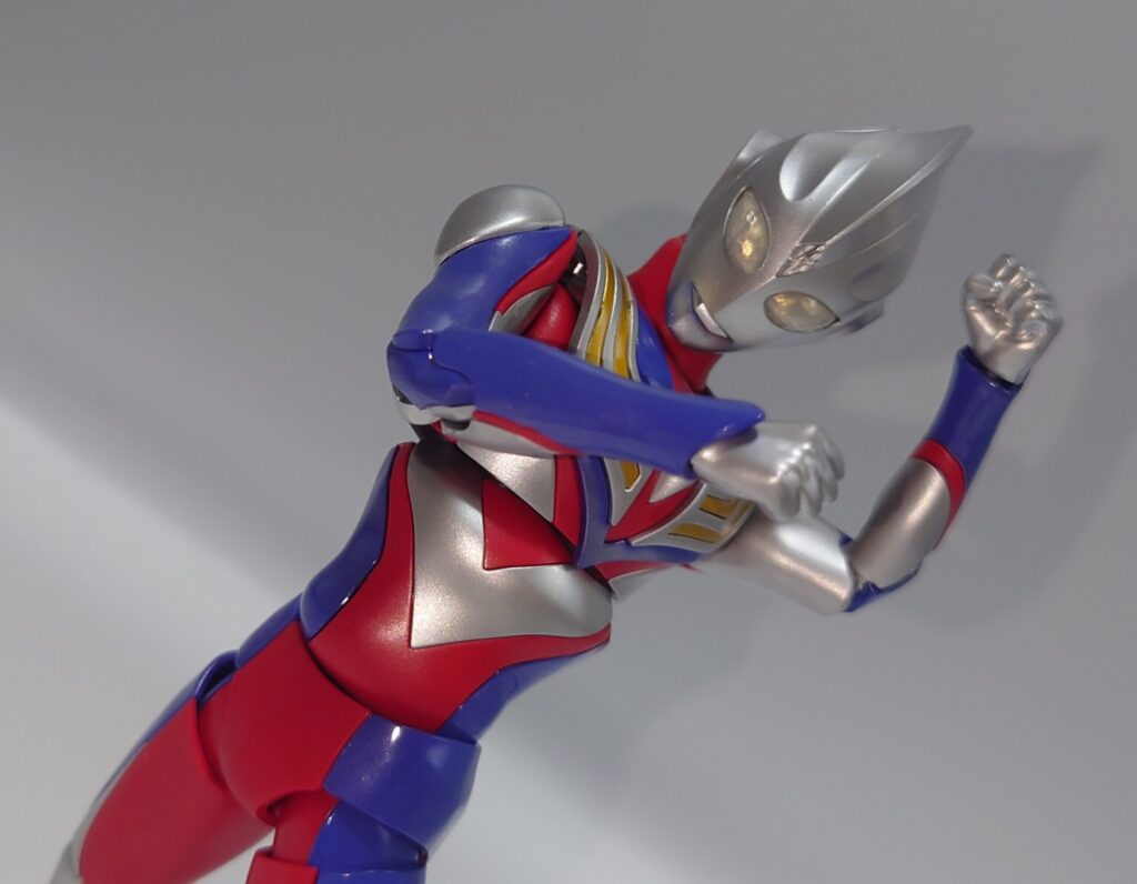 各部可動は上腕のロールが色分け再現の都合上再現できない以外はなかなかの可動範囲を誇ります。しかし腕周りのポーズが制限されるのは光線技が必殺技のウルトラマンフィギュアとしては辛い…
