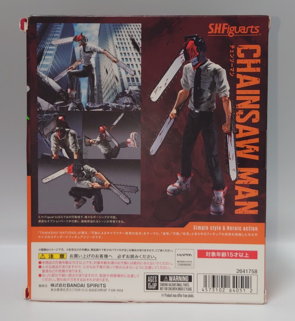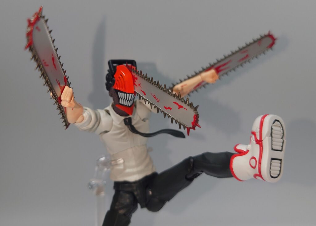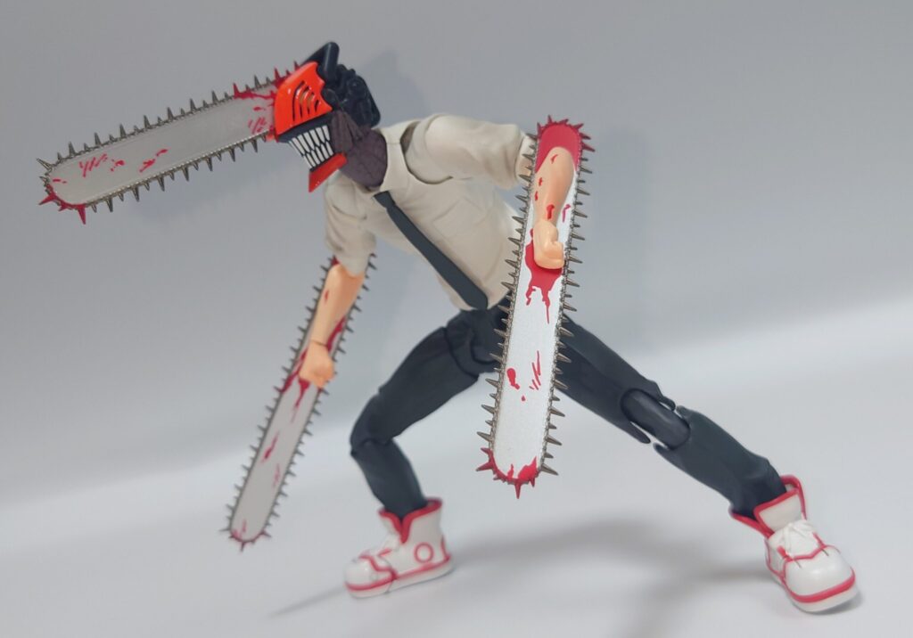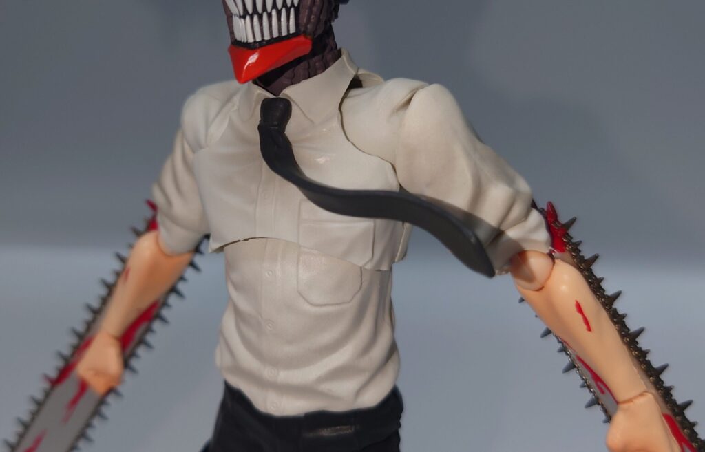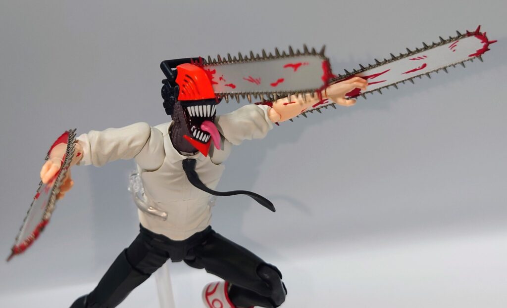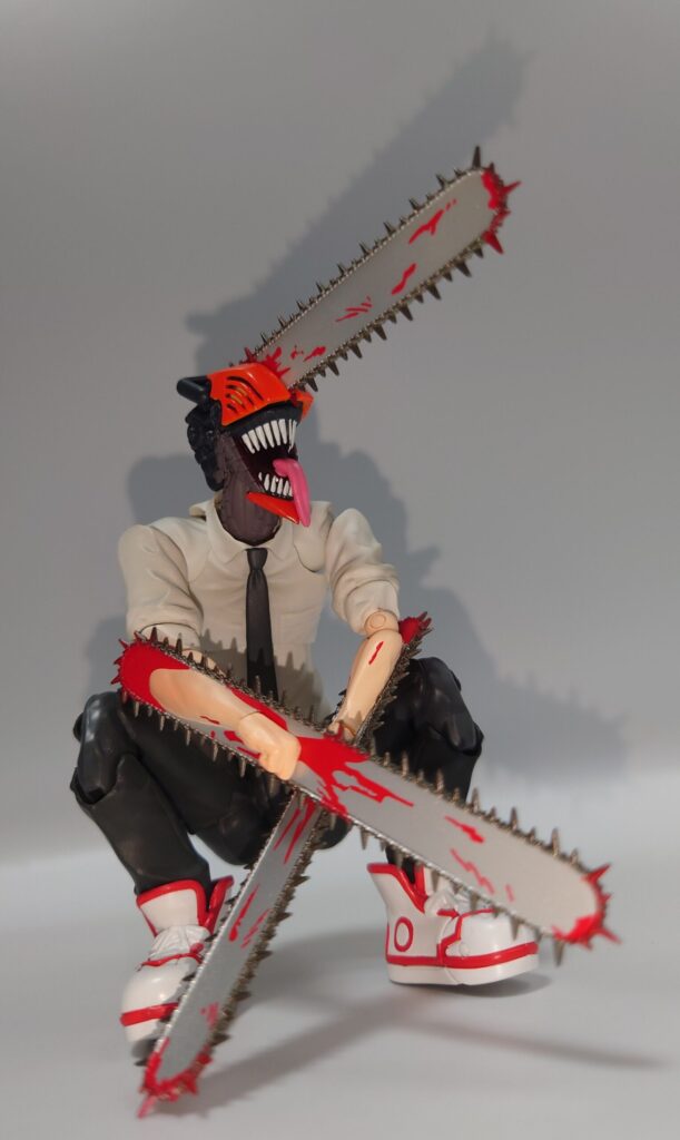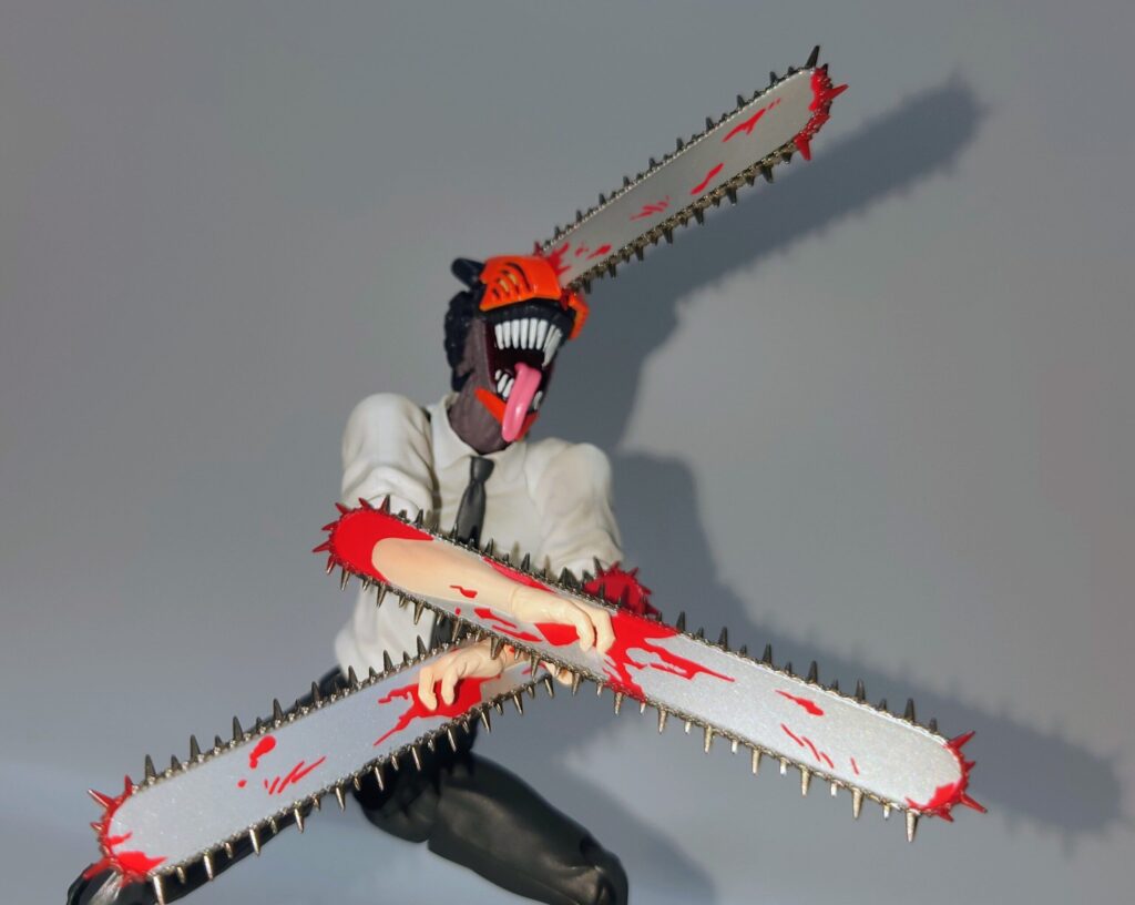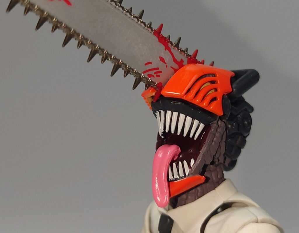 チェンソーマンのアクションフィギュア…と言うことでSMPと変わりないやんと思って触りましたがチェンソーについた血糊や舌出し頭部、頭身の違いなどでずいぶん差別化出来ると思います。現在入手困難ですが、SMP以上に原作やアニメのイメージに近いので是非オススメしたい一品です