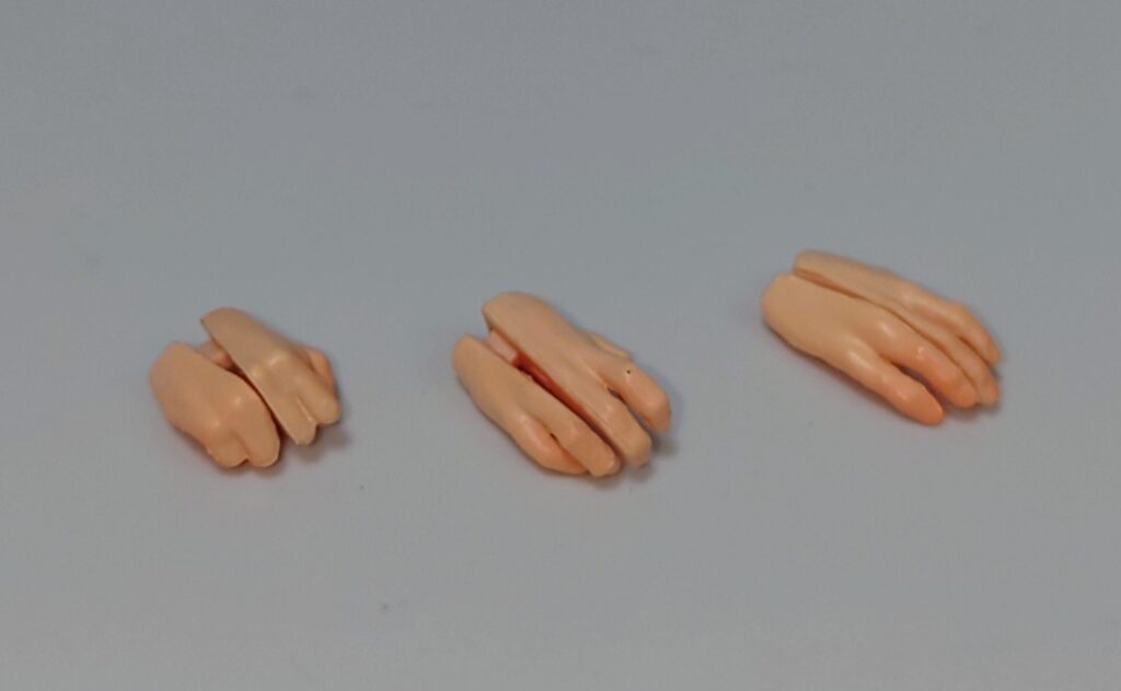 手首は取り外してチェンソーの刃に挟み込むような形で取り付けます