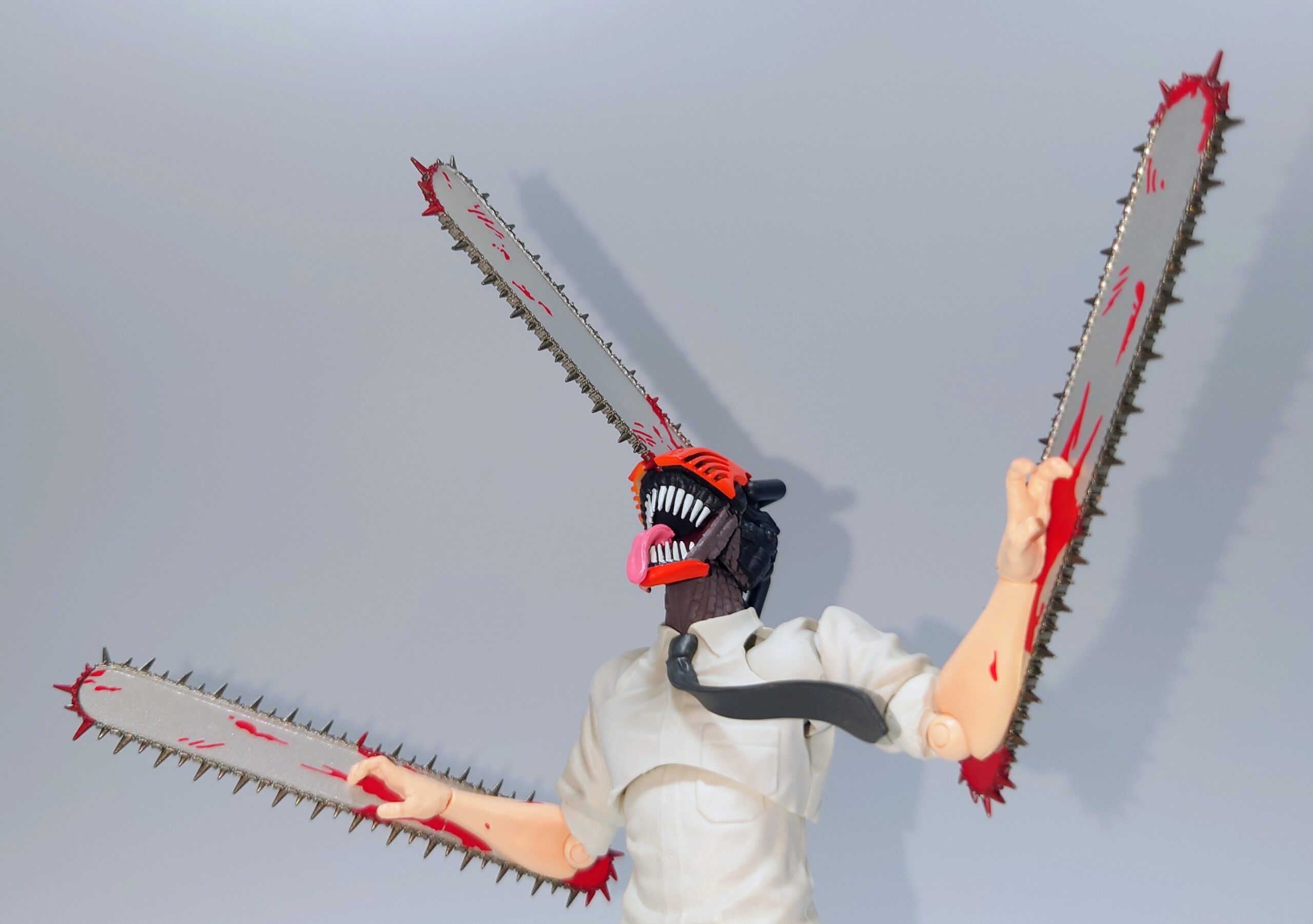 チェンソーマンのアクションフィギュア…と言うことでSMPと変わりないやんと思って触りましたがチェンソーについた血糊や舌出し頭部、頭身の違いなどでずいぶん差別化出来ると思います。現在入手困難ですが、SMP以上に原作やアニメのイメージに近いので是非オススメしたい一品です