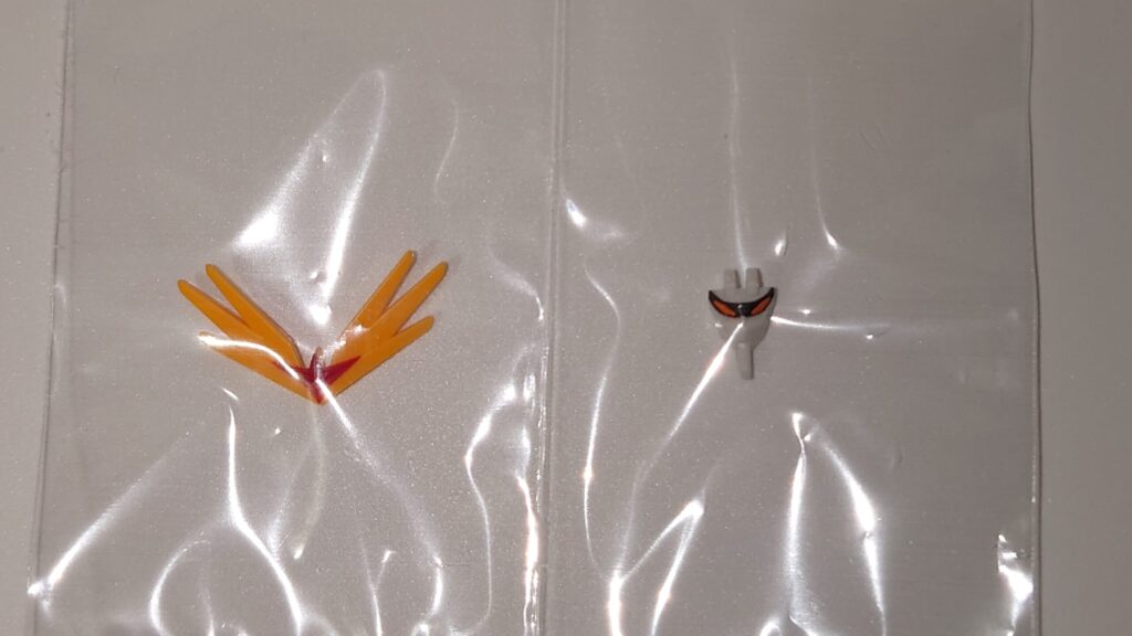 頭部。額の十字、目の部分は塗装でそのまま組み上げてもアニメに近い仕上がりに
