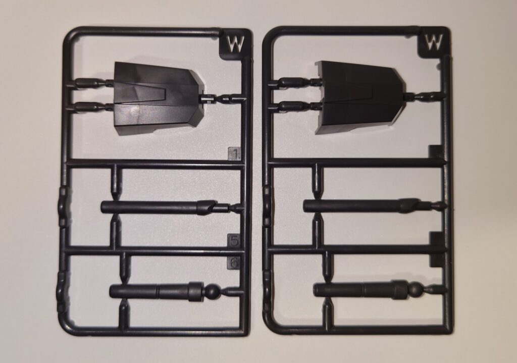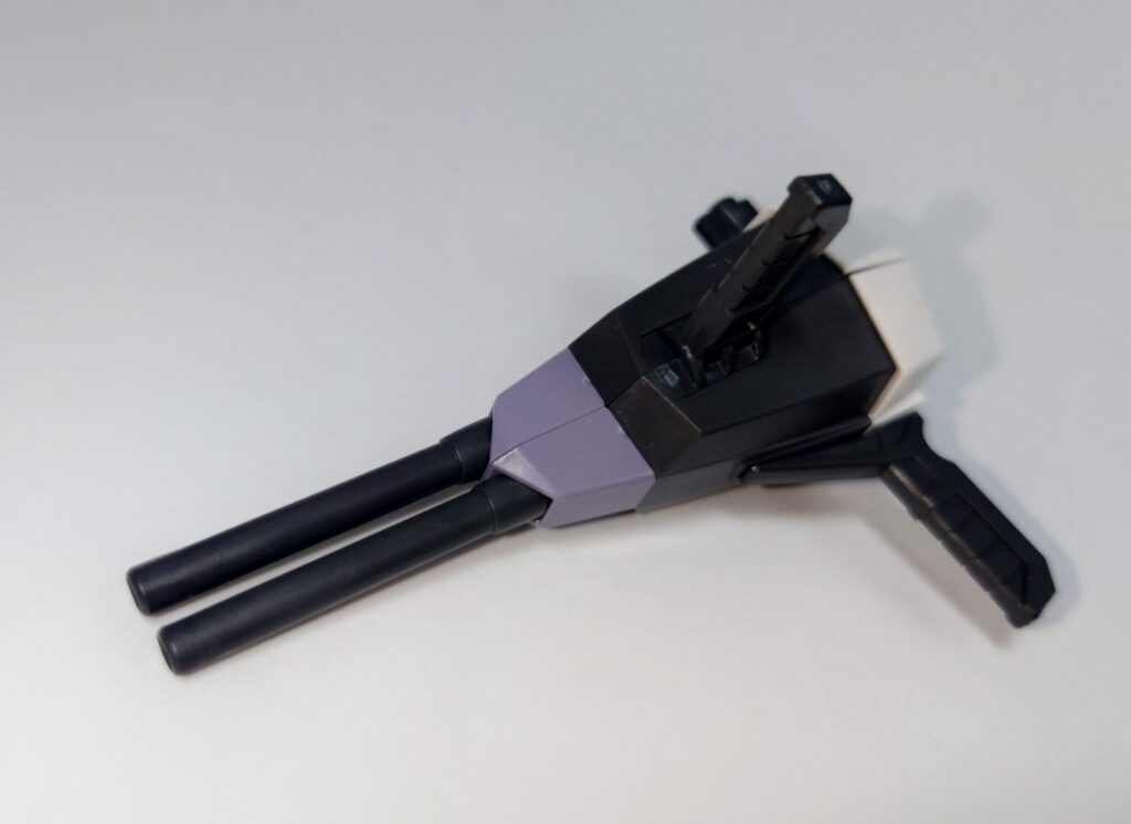 脚部側面のパーツを取り外しグリップなどを取り付ければアースキャノンが完成