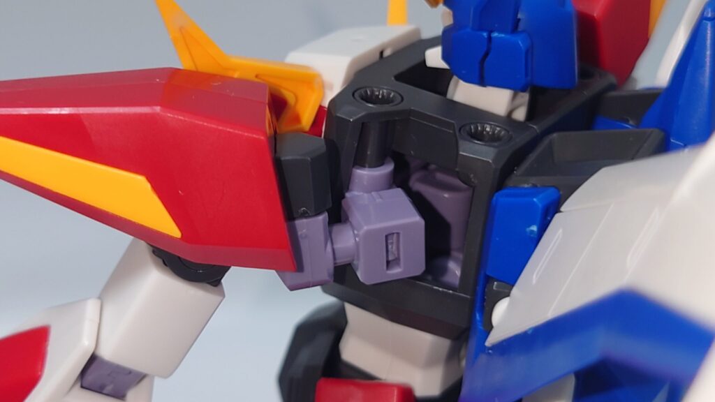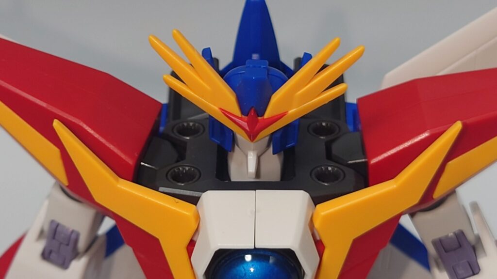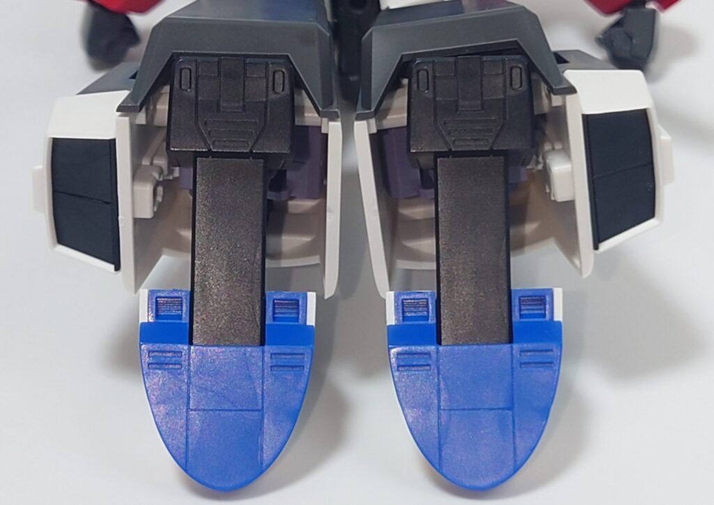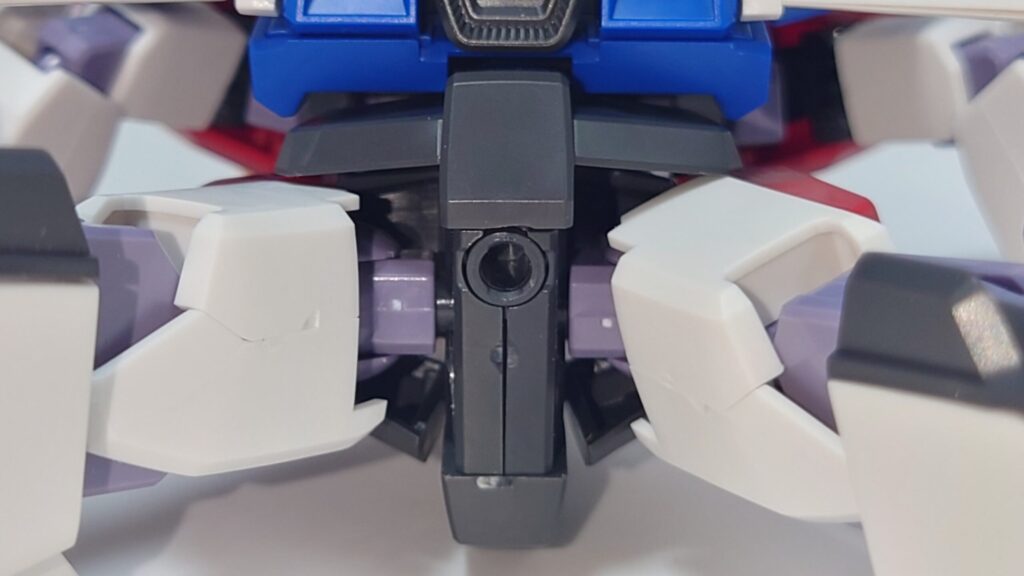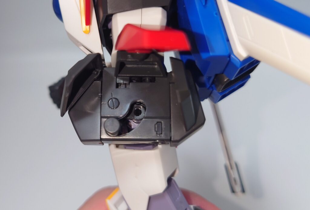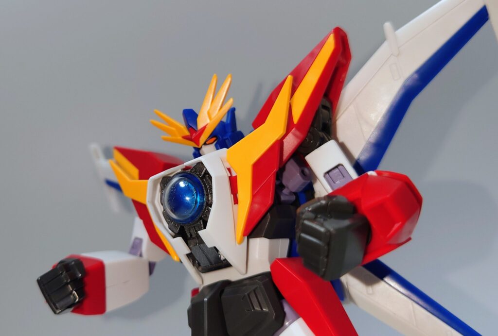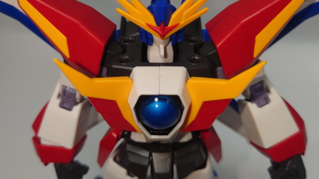 下方ウイング端のガンメタはマスキングによる塗装で本来は色分けされていません。他には胸部クリスタル、ブレストアースバスター部をメタリックカラーで塗装しました