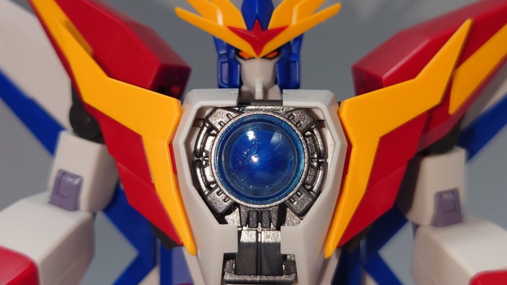 胸のクリスタルはクリアパーツ。本レビューではパーツをコンパウンドで磨き上げ、裏にシルバーリーフを塗っています