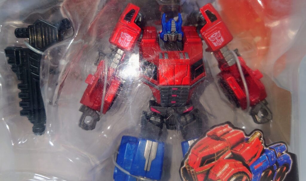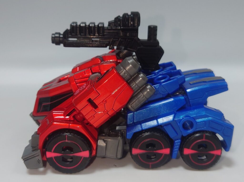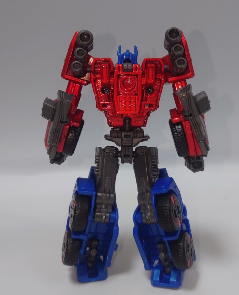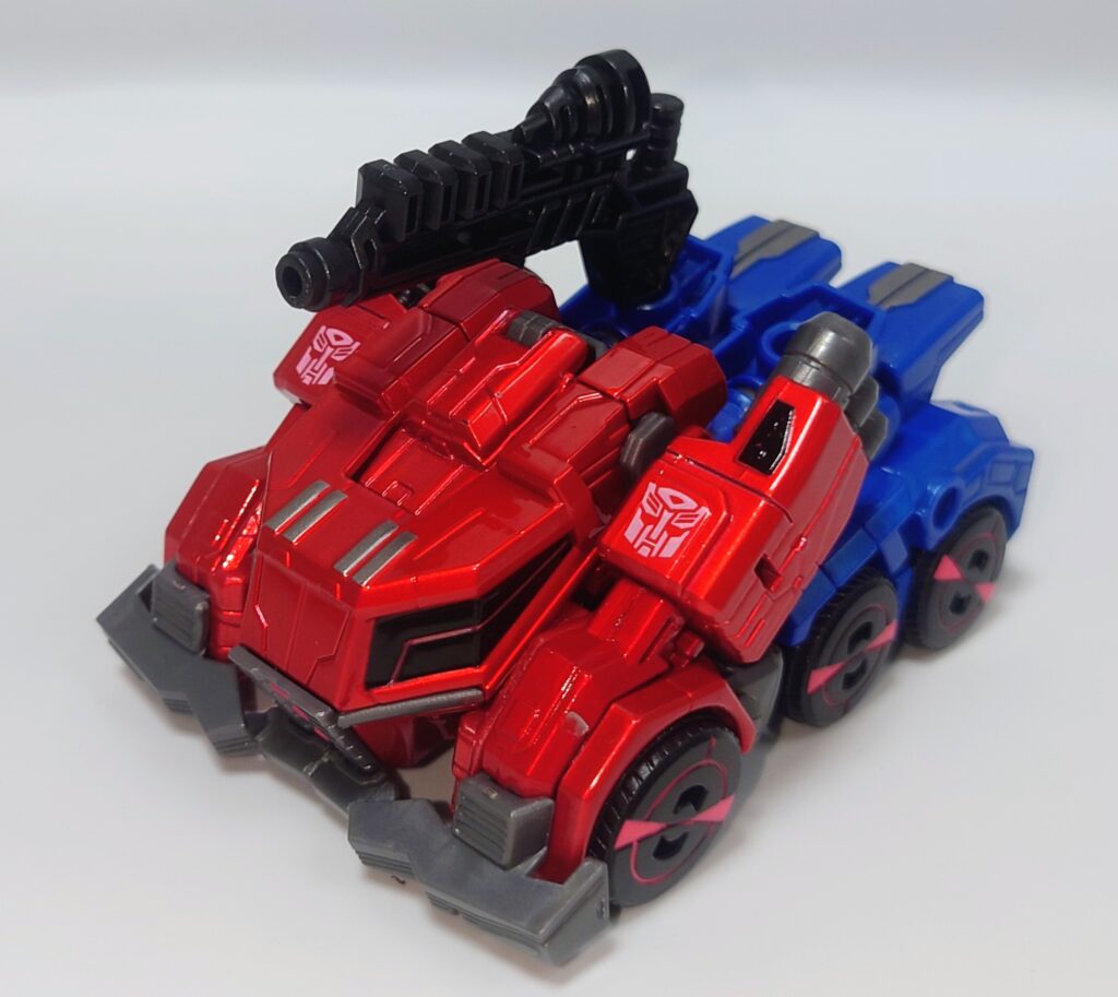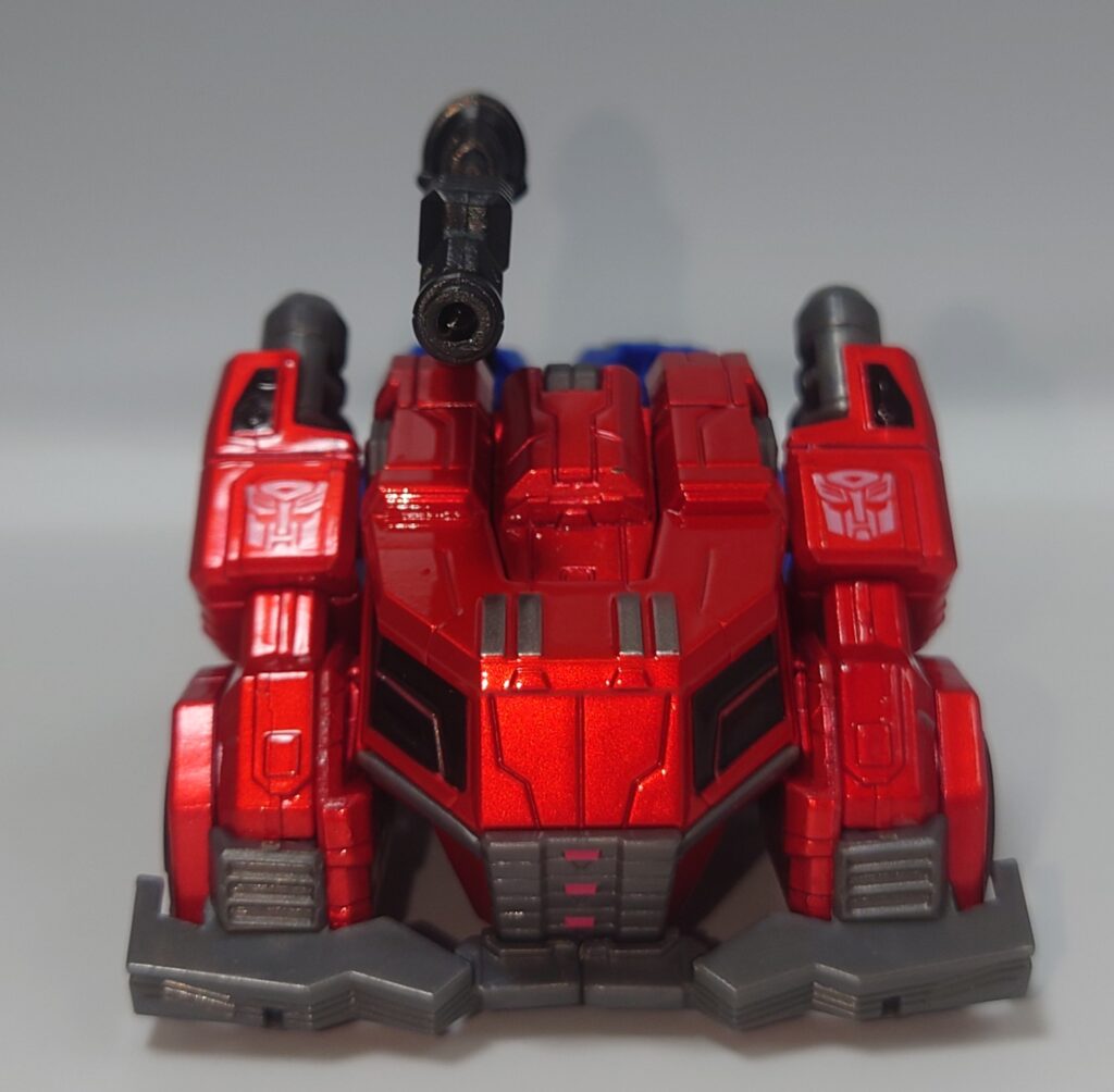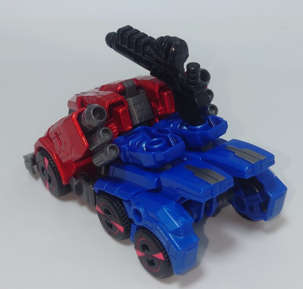 UNオプティマスと比べると流線型から直線的な形状に変更され無骨なバトルカーといった見た目に。派手なキャンディ塗装が目を引くものの筆者の個体は目立つ箇所に傷が…クリアレッドでリタッチするかな?