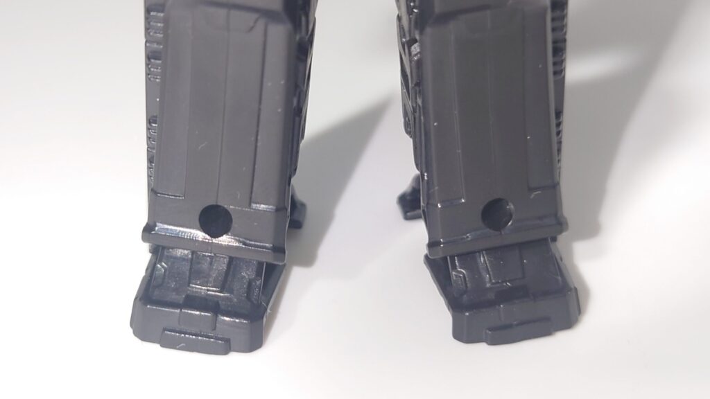 足首が可動しないため自立時の安定性に欠くものの、オプティマス、スタースクリームなどと比べて腰が可動するためポージングの幅はそれなりに