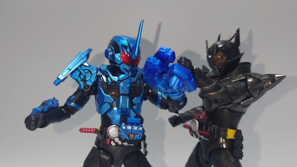メタルビルドは頭部とフルボトル以外はほぼハザードフォームのため付属頭部の交換と対応したフルボトルを装填することで桐生戦兎が使用した2つのフォームを再現できます