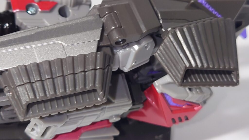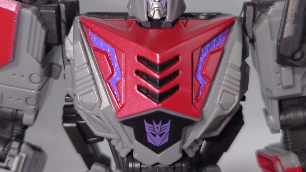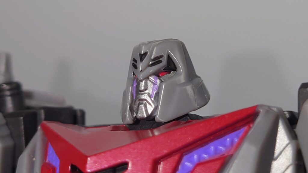 頭部。顔に走る紫のラインがどことなくアニテ版のメガトロンに近い印象