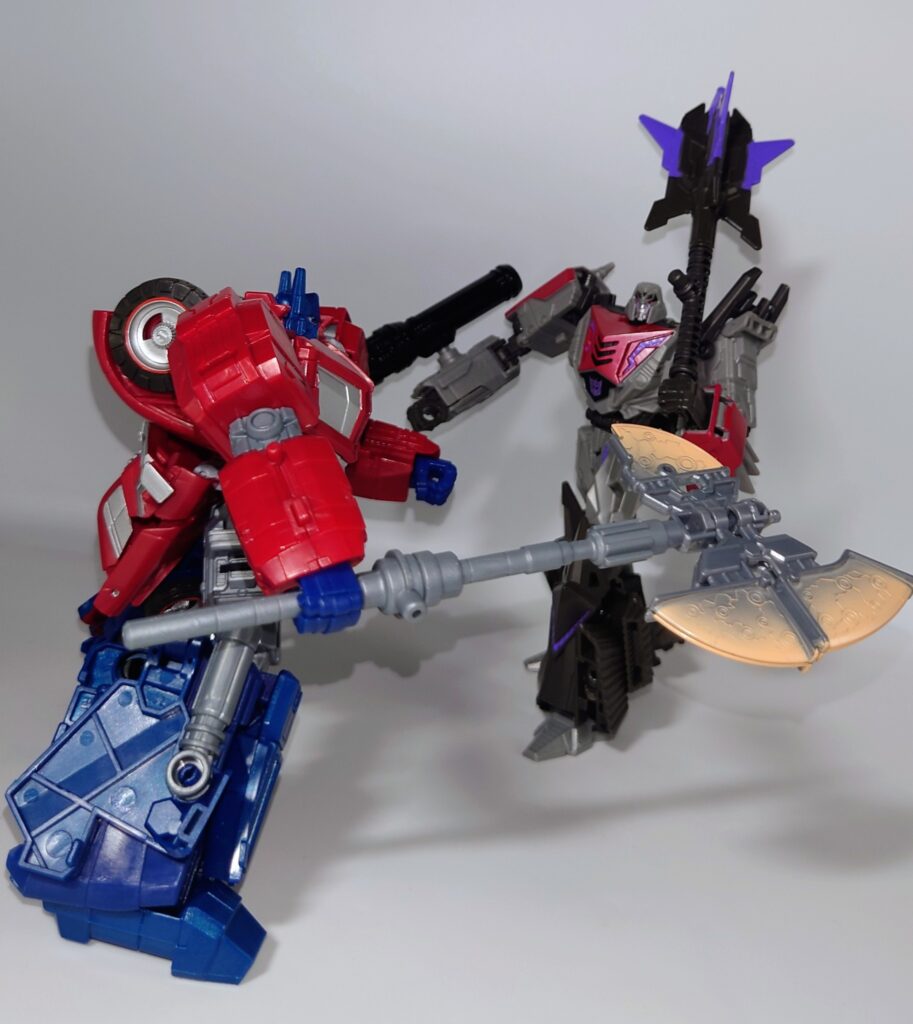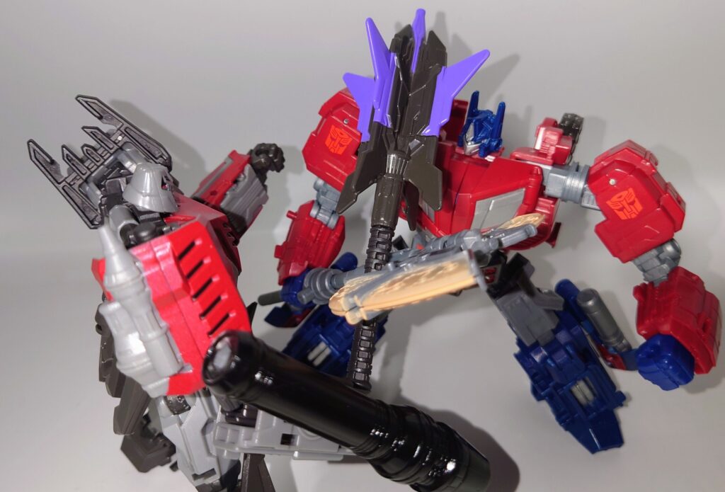 オプティマスプライムと。なんであっちはこんなデ…マッシブなバランスになったんだろう?なんかAOTP版のビッグコンボイも近い印象受けるんですが設計した人同じなんかなぁ?