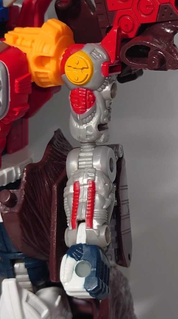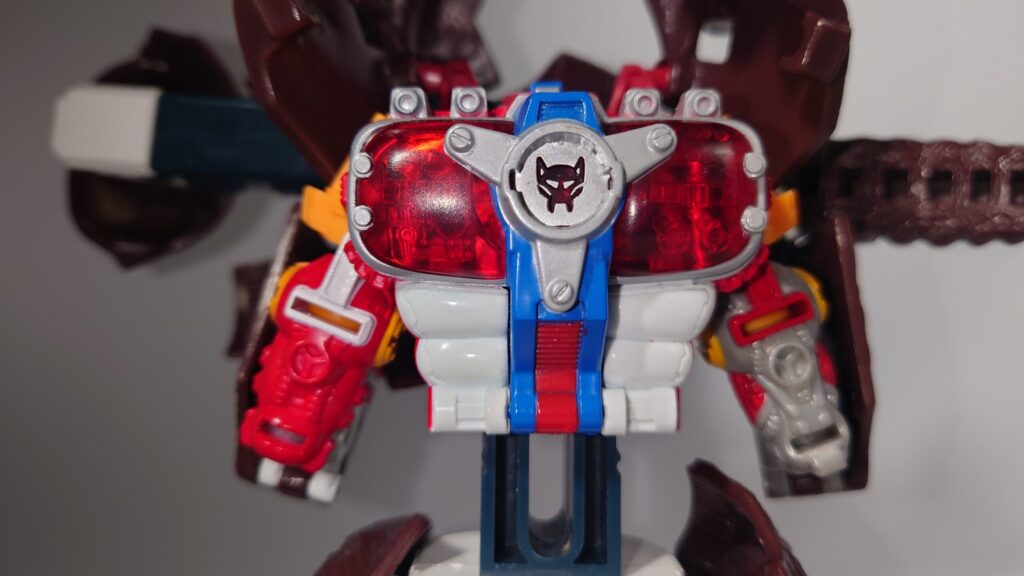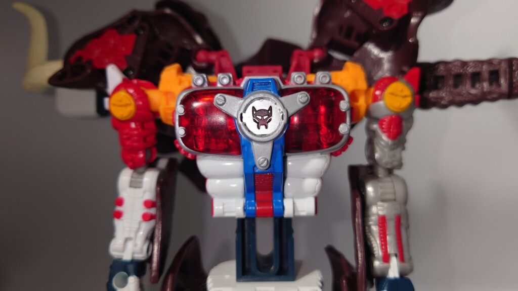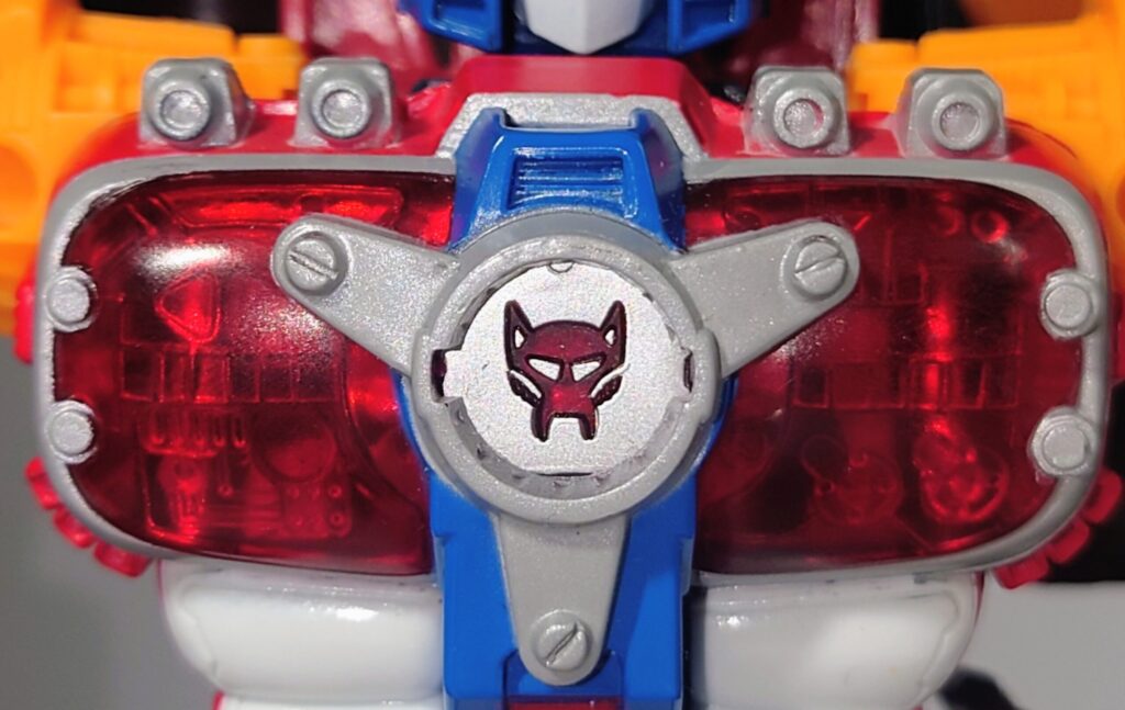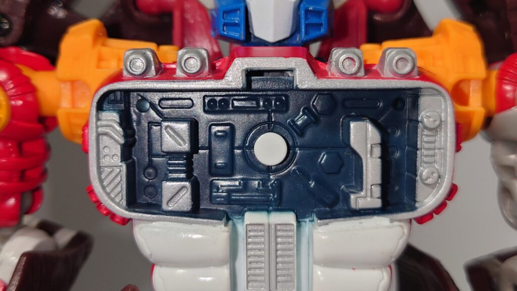 胸部アーマーはクリアパーツ。当時品は中央のサイバトロンエンブレム部分がメッキ処理されていました