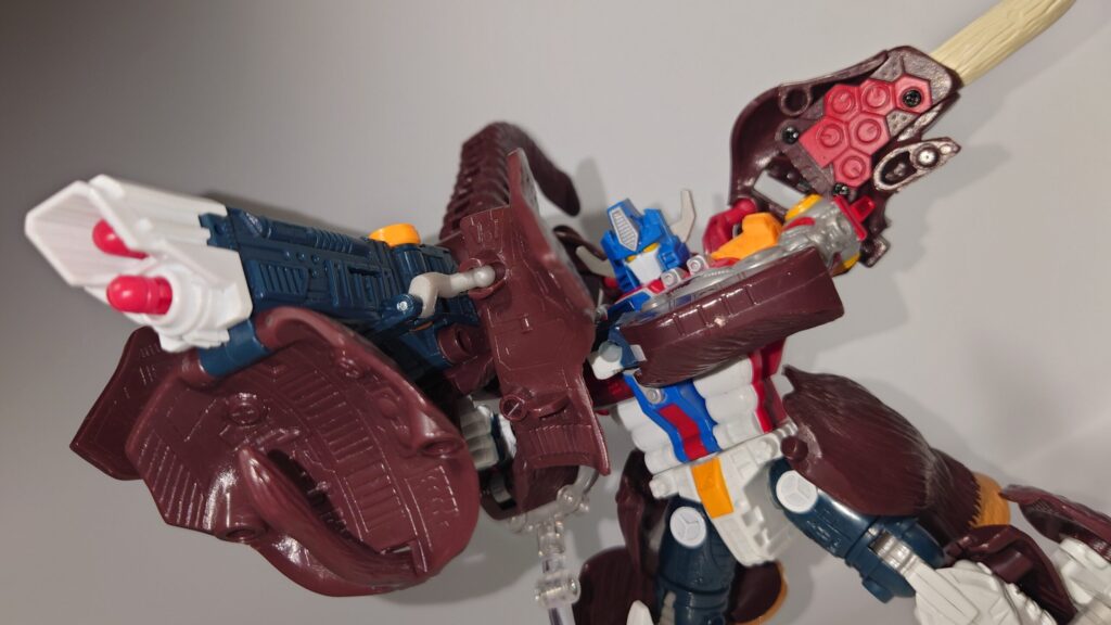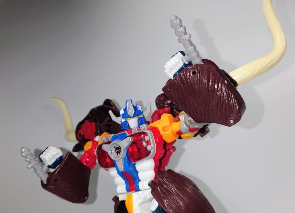 AOTP版発売をきっかけに記事を起こしましたが、いくら評判がよくても所詮は26年前のトイ…流石に思い出補正でよく見えただけだろう…と思いましたが実際に触れてみると今見ても高クオリティの造形、詰め込まれたギミック、現行と比較してやや劣るもののそれなりに広い可動範囲…と前述の問題点を差し置いてもそれらを吹き飛ばす素晴らしいトイだと再認識出来ました。何年先になるかわかりませんが是非ともMPGでのリメイクに期待したいです!