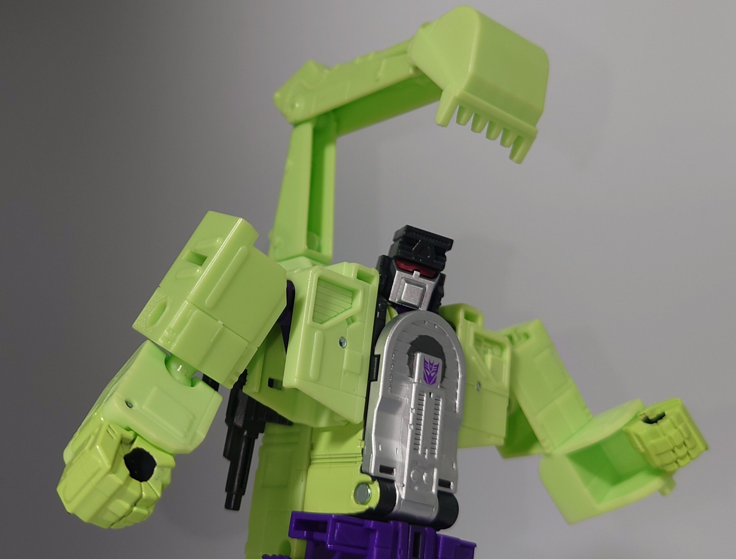 ショベルカーに変形。運転席は復刻版より小さくなっています。この比率だとパワーダグオンのそれに近い巨大ロボになりそう