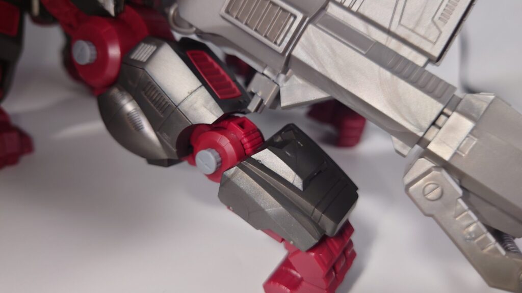 後脚は他のプラモデルではなかなかみないようはギミックが仕込まれており足首を動かさなければ膝部分が一定以上動かないという連動機構のようなものがあります