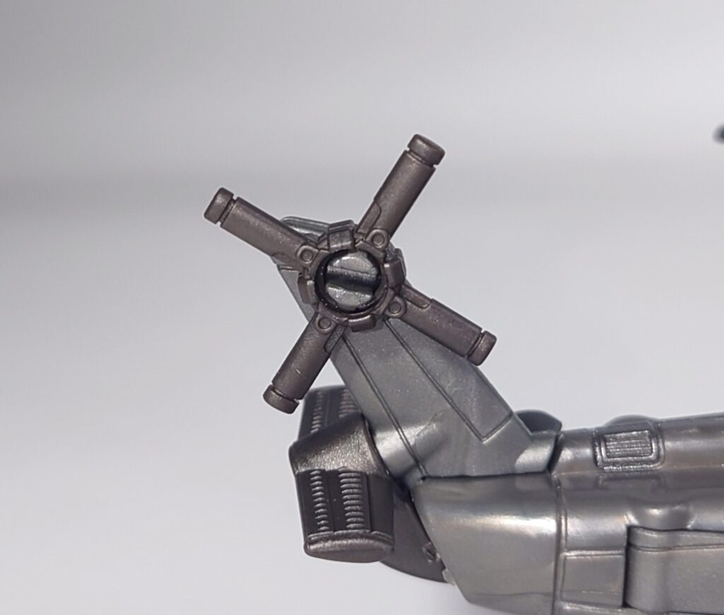 腕部はテールブームが展開したものですがアームにより腕部から離れた形状に、この手の変形ロボは一体化していることが多いので珍しい