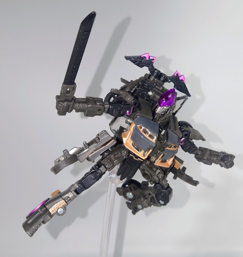 ディテールは割と劇中に準拠していますが体型はあまり似ていません(笑)それでも触っていて変形にさほどストレスがなくポーズもある程度は融通が利くためあまり不満がわかない不思議なトイでした
