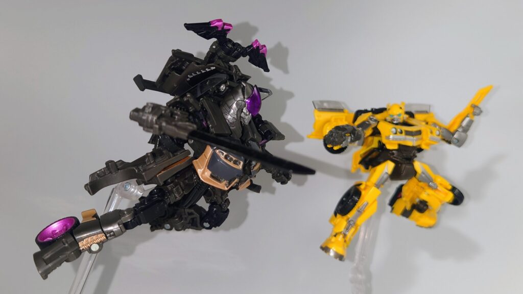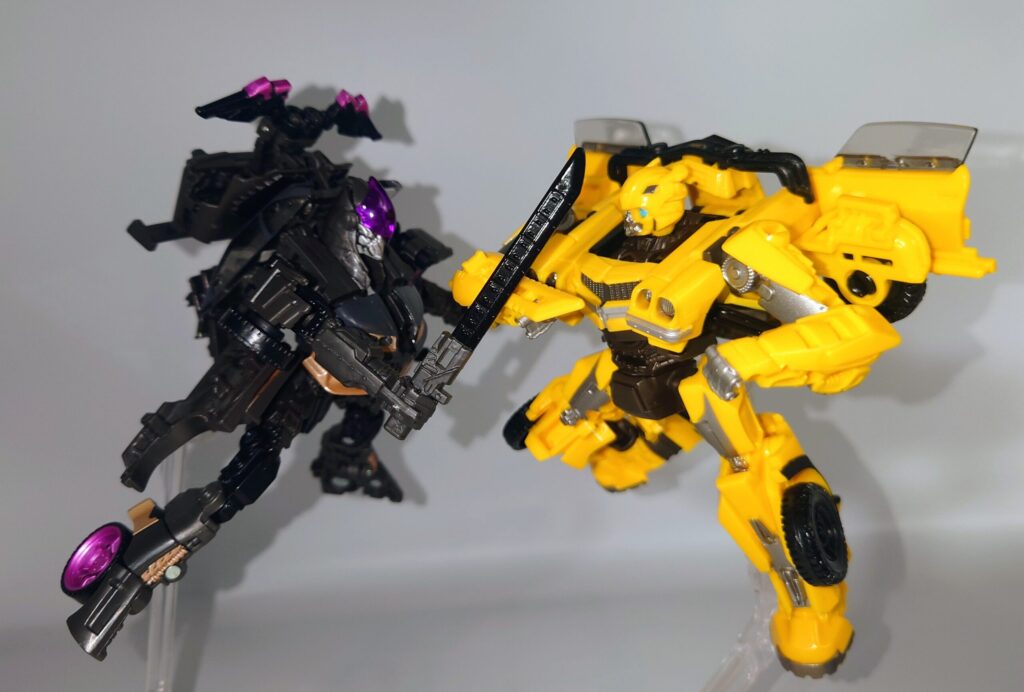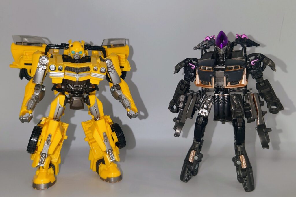 劇中にて死闘を繰り広げたバンブルビーとはほぼ同身長