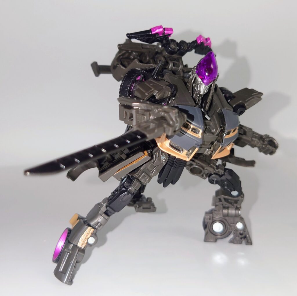 ディテールは割と劇中に準拠していますが体型はあまり似ていません(笑)それでも触っていて変形にさほどストレスがなくポーズもある程度は融通が利くためあまり不満がわかない不思議なトイでした