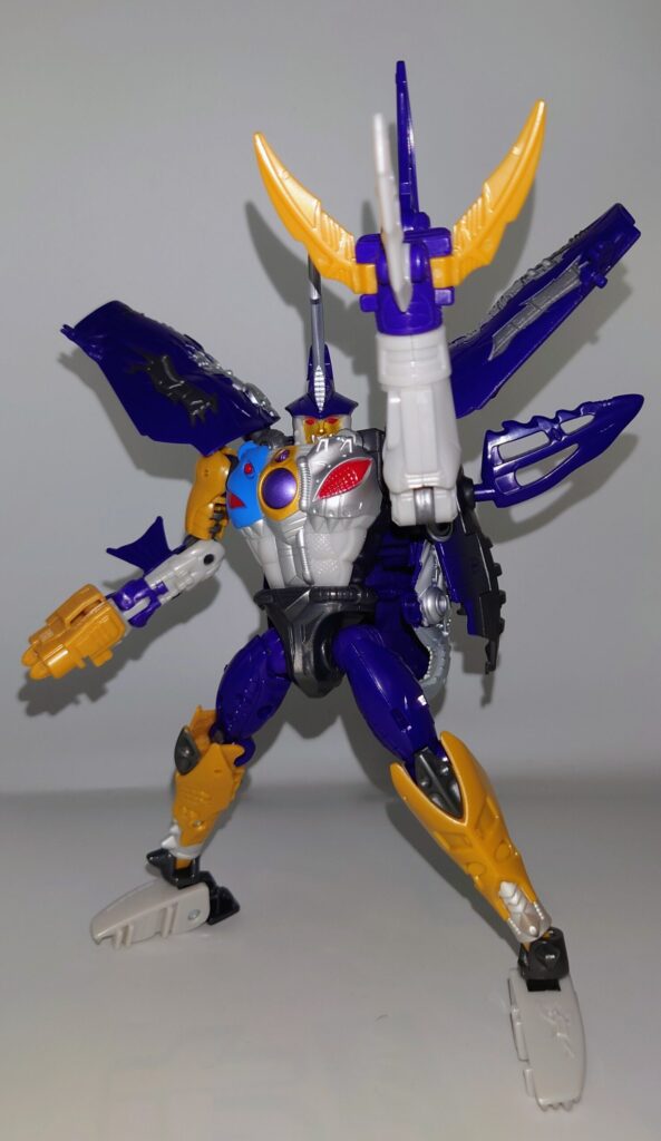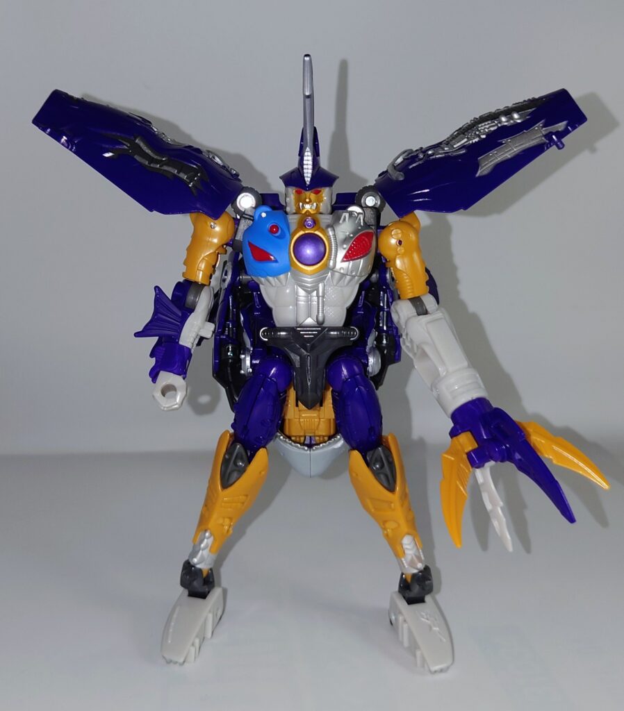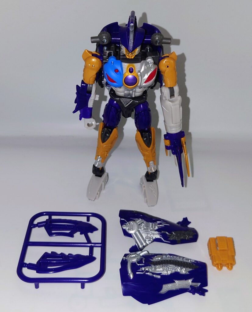 正統派リメイクのゲルシャーク。レガシー版スピードブレイカーがあんまりな出来だったので当時品のギミックはオミットされ、スタンド非対応なもののアニメのスタイル再現とオリジナルトイを意識した変形はまさに文句の付け所がないです