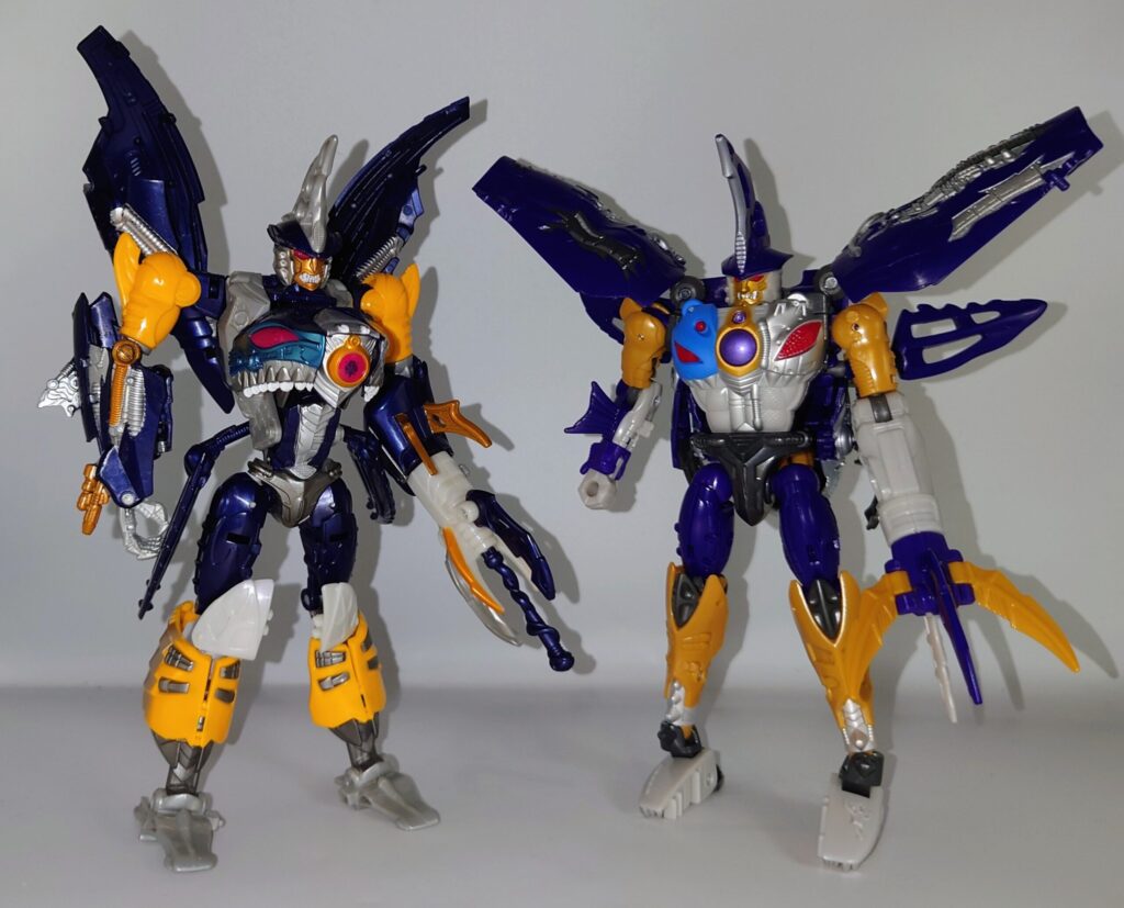 ヒレがありませんがオリジナルトイ(2000年発売)と比較。扱いやすさはAOTP版にはかないませんが、塗装量は圧倒的に無効に軍配が上がります