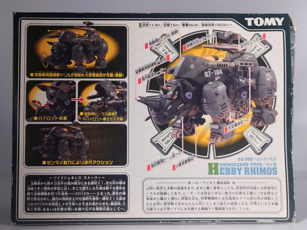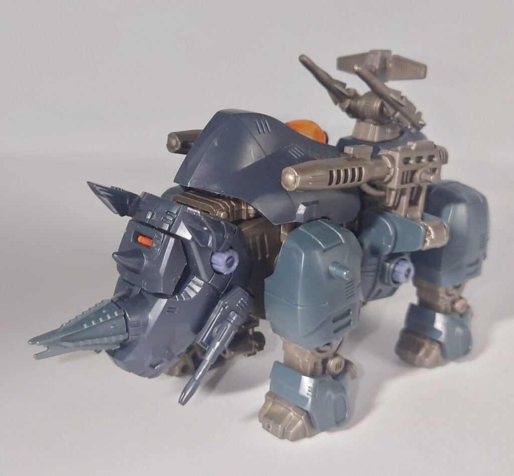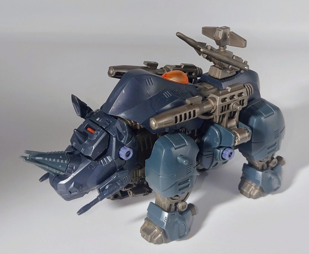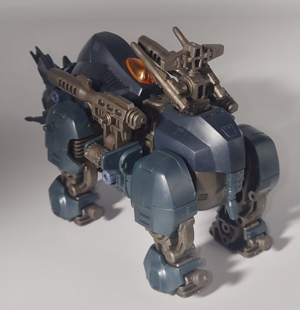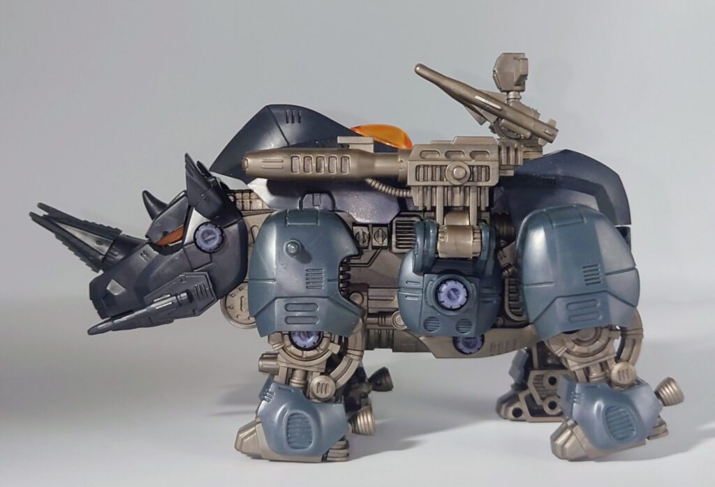 昭和期のゾイドらしく精密なギミックに重厚なデザインが魅力的な本機ですがベースになったブラックライモスは新バトルストーリーやアニメでは登場せず、HMMといった再商品化の機会にも恵まれない不遇な名機…リアライズモデルはすべてのゾイドを立体化すると宣言していますのでブラックライモスのリメイクはそちらに期待か…?