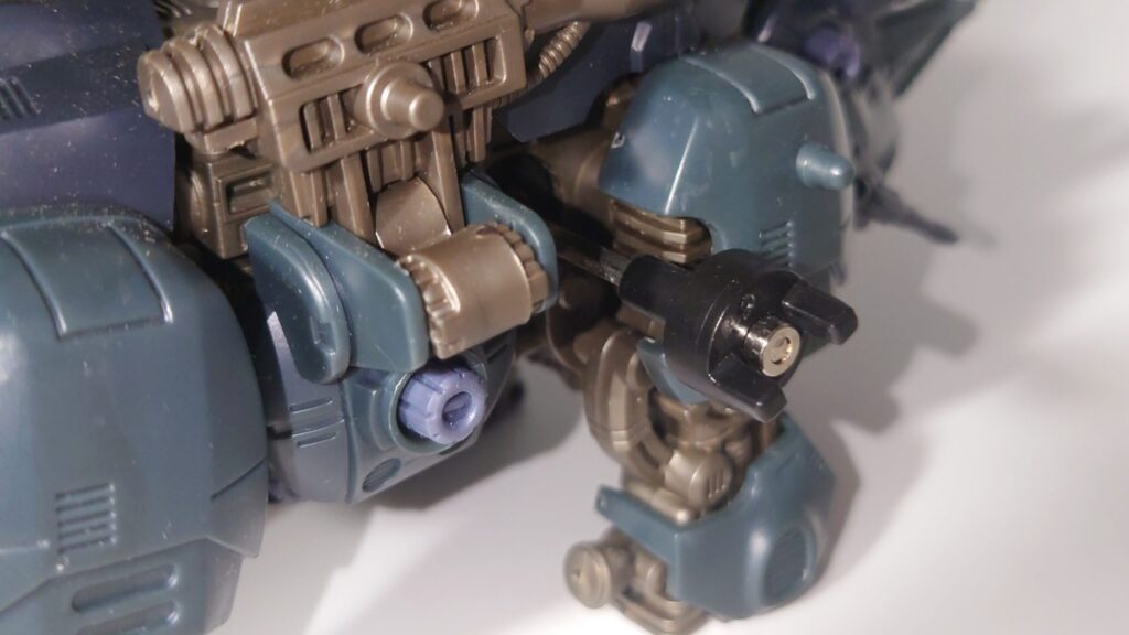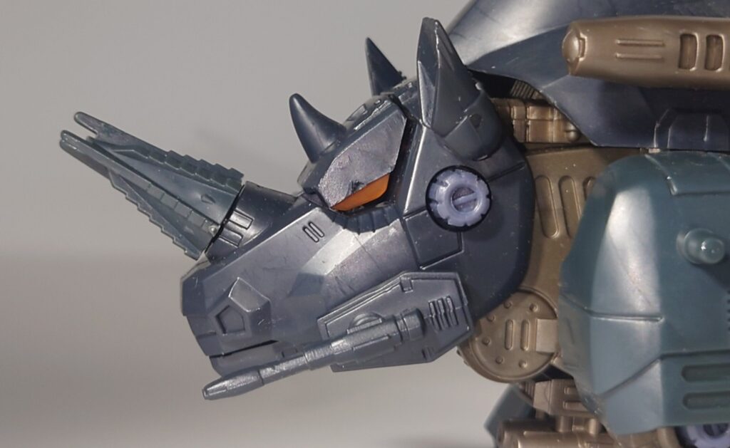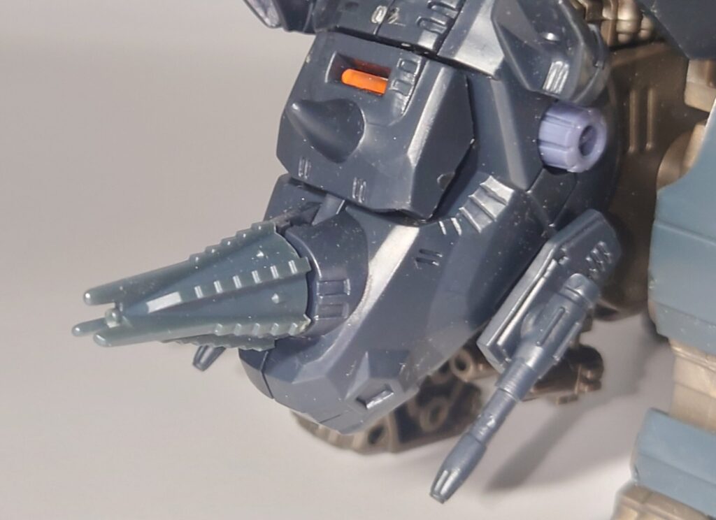 頭部。元がゼネバス(ガイロス)帝国故に装甲型のコクピットに。ドリル状の角は後述のギミックにより実際に回転します