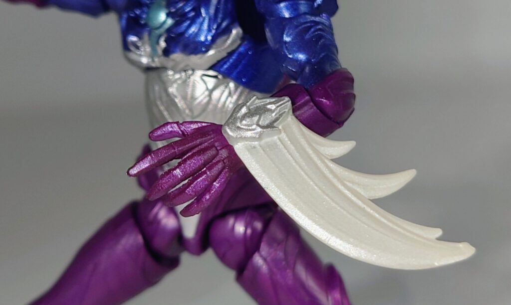 背鰭のような造形がウルトラマンとして異質に感じました。こうしてみるとなかなか複雑な造形をしています。わかりにくいながらも左右非対称のデザイン。腰にはスタンド対応穴が