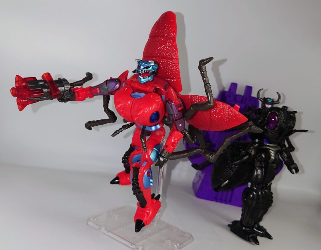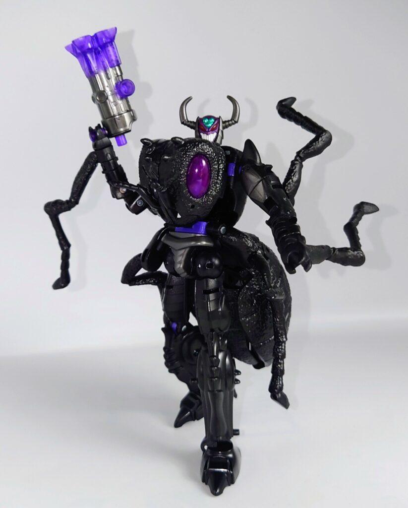 アンタゴニーはボットコン1998にて600個限定で販売されたトイが元ネタでその数の少なさからプレミアがついています。しかしながら該当トイはパープルの濃度が薄くすみれ色に近い配色だった為に当時品と比べると違和感があるかも