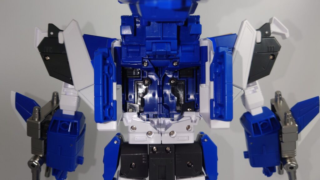 エクスカイザーを収納したあとに機首を閉じてロックを掛けます。キングエクスカイザーよりは若干ですが入れやすくなっています