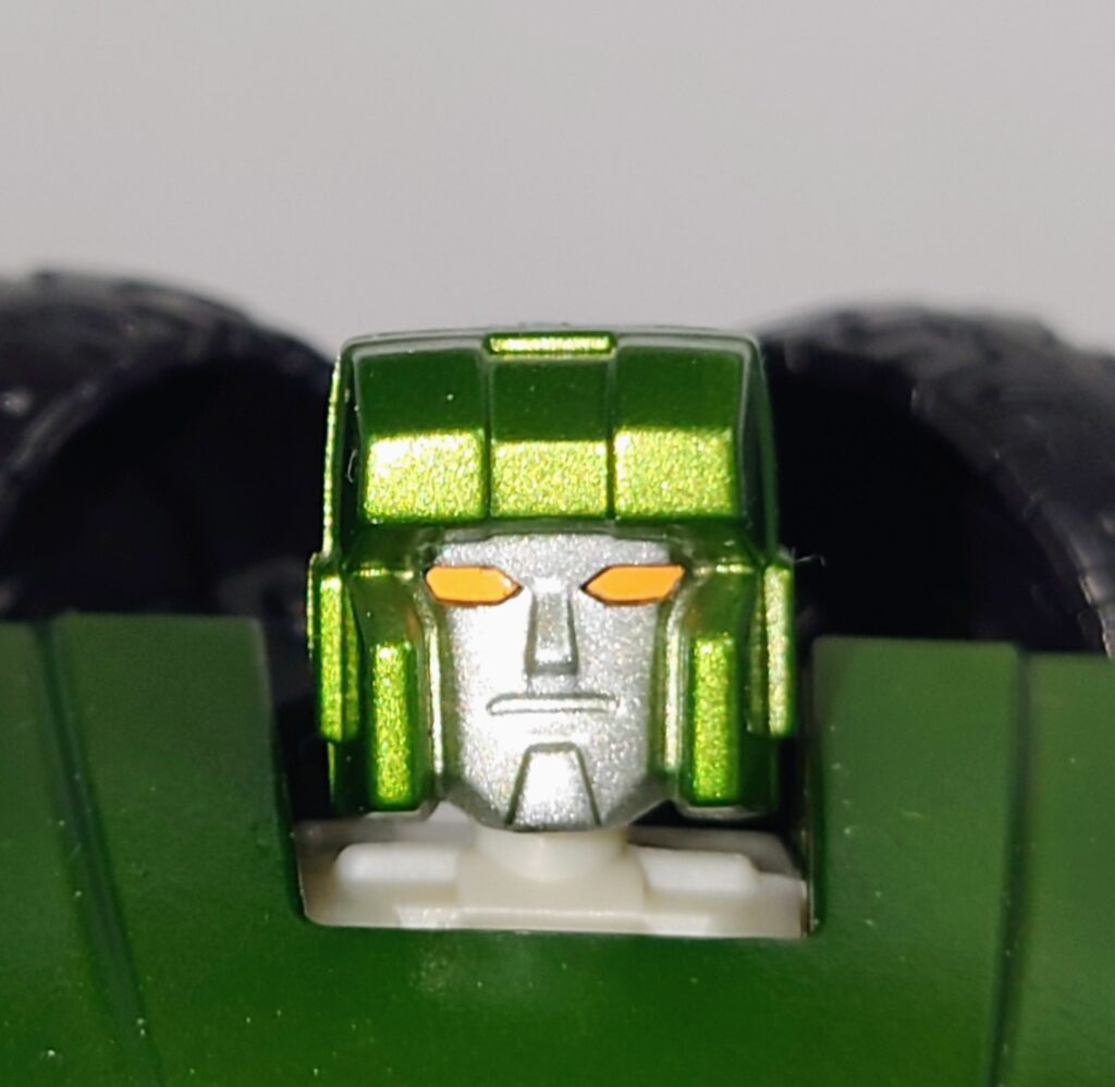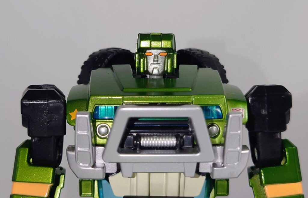 頭部。玩具版G1ハウンドのイラストを意識したのか黄色の塗装に