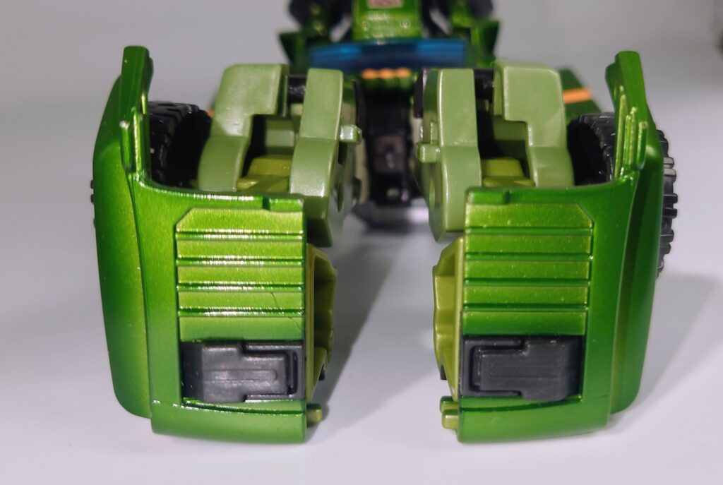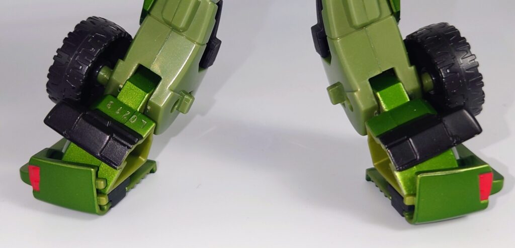 足首部分も接地に合わせて可動します。少し前の時期のヘケコン型やアストロトレインと比較しても当時としては画期的な構造で現代のフォーマットを先取りしたようで非常に興味深いです