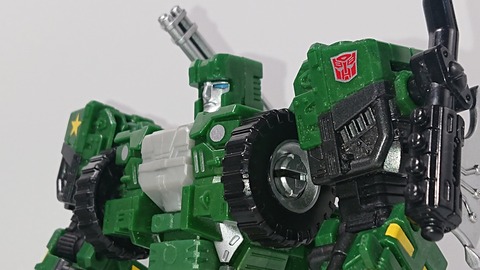 2019年 タカラトミーより発売価格3850円ビークルモード濃いモスグリーンのカラーリング。フォルムもG1時代と比較して複雑になっているため純粋な現代リメイクとしてもありな外観タイヤも本体色と同じモスグリーンで塗装されています背面。最近省略...
